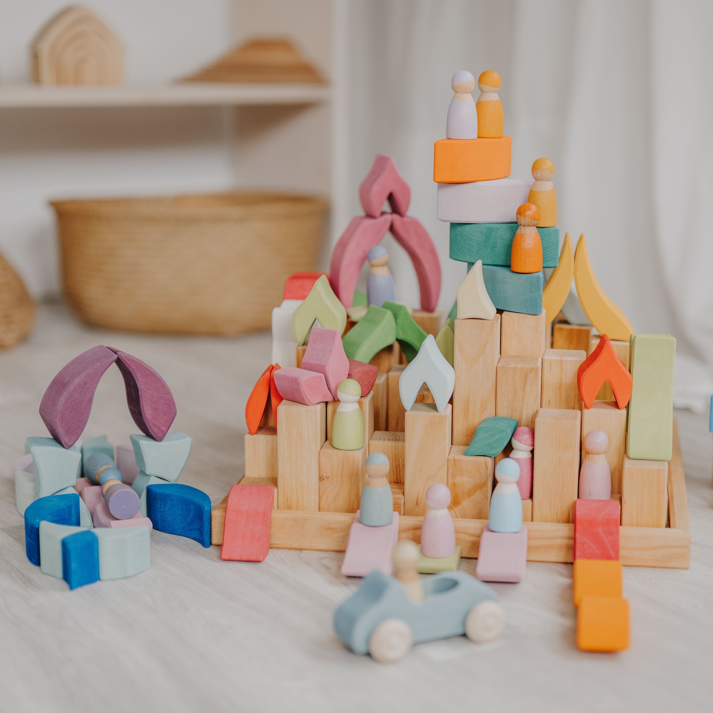 The twelve Pastel rainbow Friends are a wonderful addition to our Large Rainbow, not just for sorting by colour but also for imaginative play - when they want to live in a magical way in the magical world of the Large Rainbows! The world of Large Rainbows (classic rainbow colours, pastel, natural, monochrome) is at the heart of free play. This colourful mixture of the most diverse and perfectly complementary building materials opens up a limitless range of different play options that adapt to the increasing capabilities of the child.