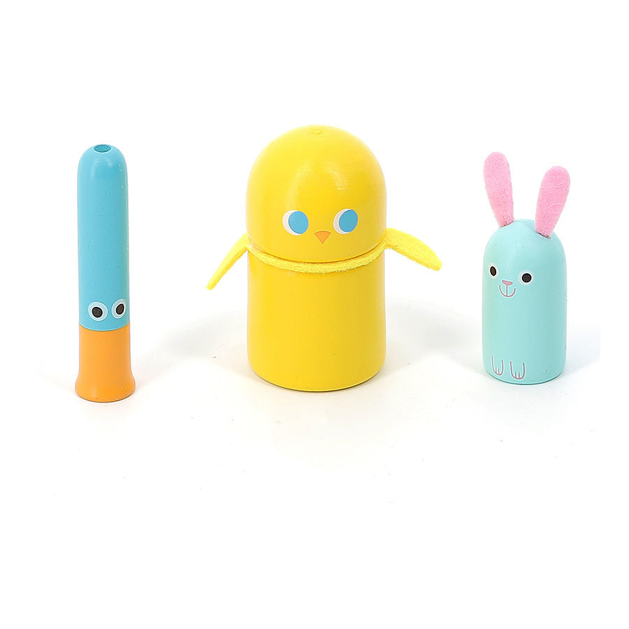 Un empilable poire qui cache un ver, un petit lapin cache dans une carotte, un oiseau et un canard qui font du bruit, un seau de mais maracas et un tracteur Monsieur / Madame sur lequel il faut faire coulisser des fruits. Tout un univers imaginaire pour developper la motricite et la curiosite des petits ! Tracteur multi-activites en bois. A partir de 18 mois.
