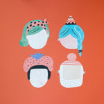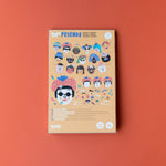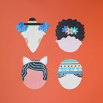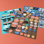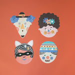 INTENDED for ages 4 years + Craft box measures approx 31cm tall, 21cm wide and 3.5cm deep. Includes 16 faces each measuring approx 18x21cm Includes 150 stickers for decorating faces. Also includes 1 cotton rope.