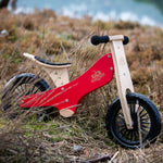 With a low step-through frame, purposefully-positioned handlebar with non-toxic grips and protection bumpers, a seat height that adjusts from 12-15 inches (30-38 centimeters) and footpegs for stability, little ones are guaranteed a comfortable transition to a pedal-powered bike! Handmade with sustainable wood from fast-growing birch trees to encourage environmental consciousness.