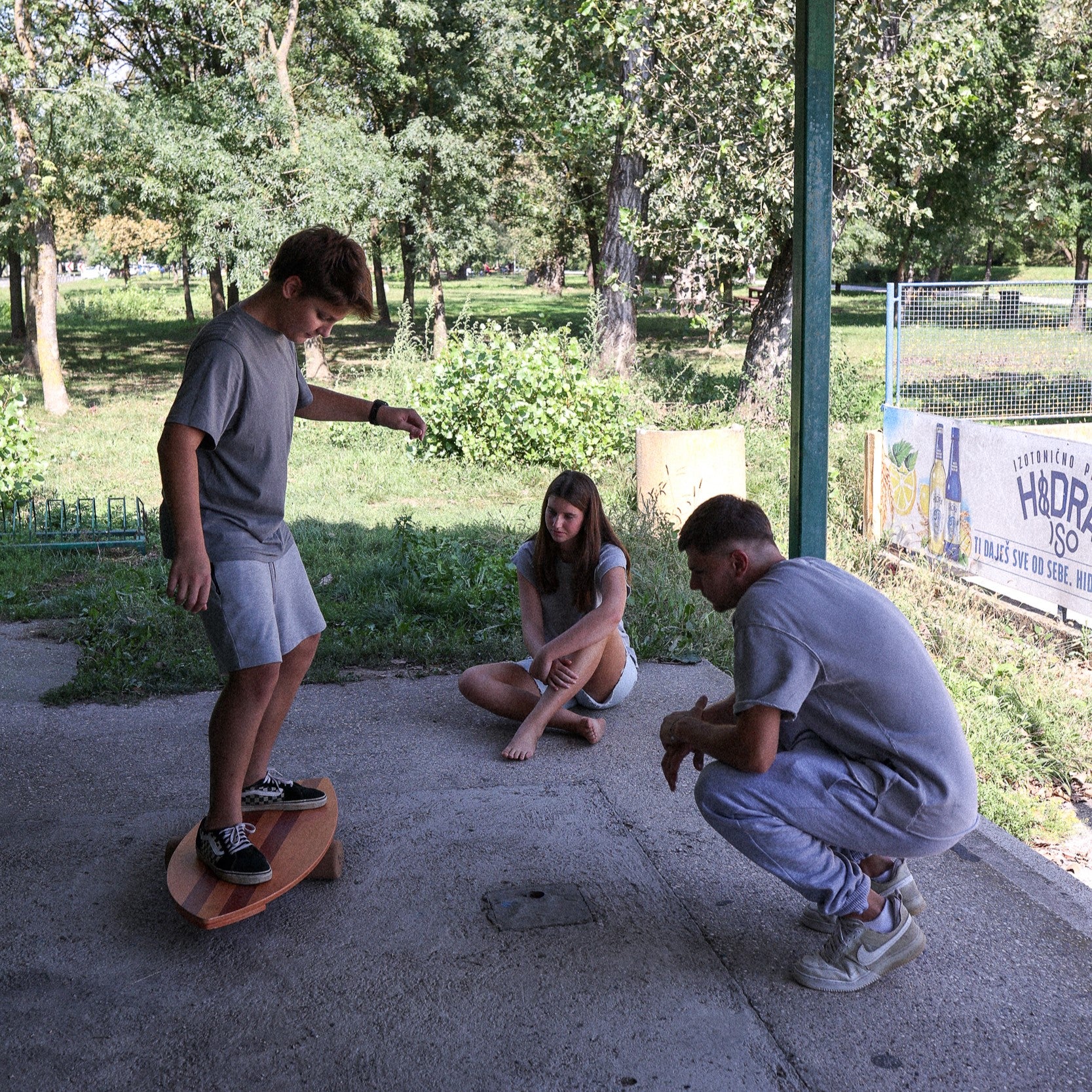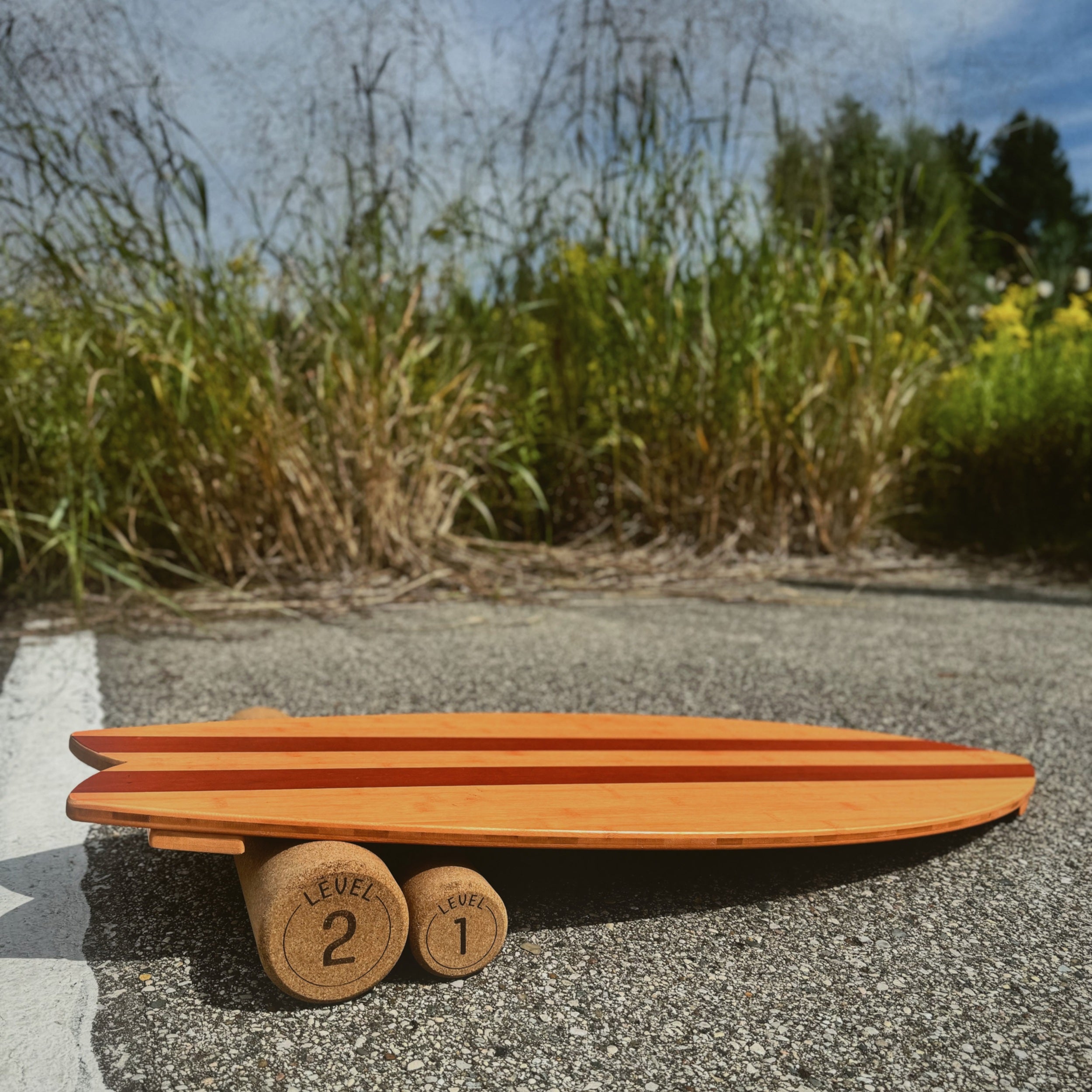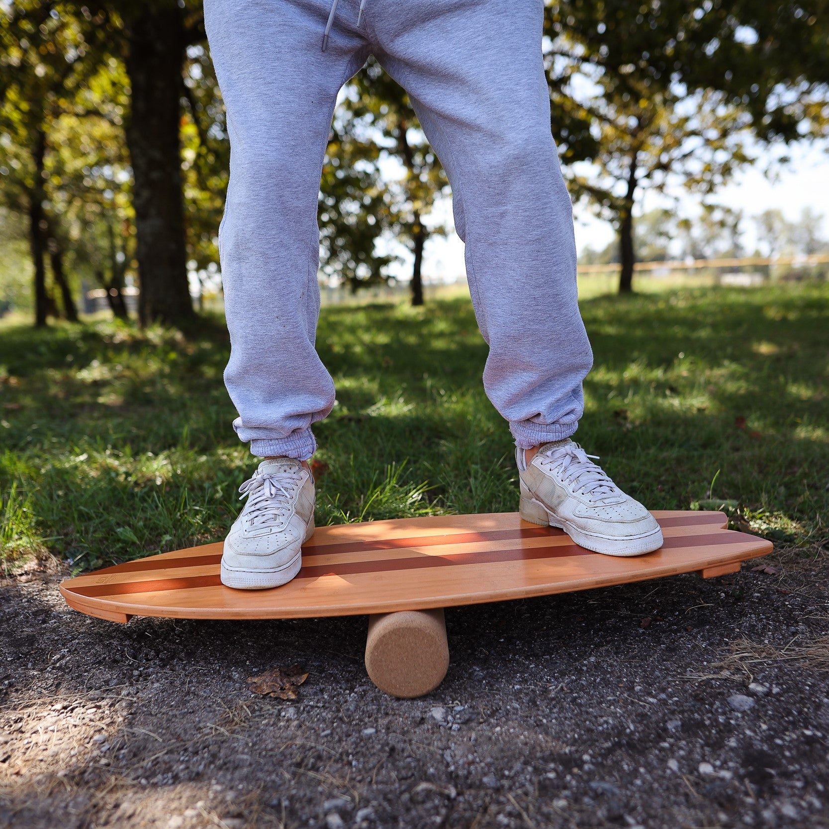 Get ready to conquer some radical waves! The Kinderfeets Balance Surfer supports active and adventurous little ones in their development of balance and coordination, mind-body connection, physical strength and logical thinking ability. Depending on your skill level, use the provided small cork roller (7 cm diameter) or large (10 cm diameter) to surf both indoors and out. See how your balance evolves during play!
