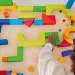 Grimms basic building block set is wonderful for small children because of its simple geometrical forms. This forms give room for the creativity, train the fine motor skills and the logical and spatial thinking.
