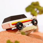 Meet the Wanderer: a vintage-inspired SUV designed for new adventures. Crafted from solid beech wood with precision-machined steel axles and smooth silicone rubber tires, this durable beauty is built to explore, from playtime to display. Finished with water-based paint and a sleek MINT™ coin detail, the Wanderer combines timeless style with modern craftsmanship.