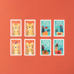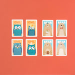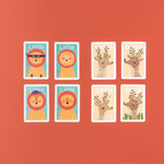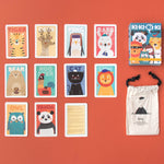 Ki-Ki-Ri-Ki Cards made in Barcelona by Londji. Find yourself a couple to play and gather all the members of your animal family with this square card game! The couple that gets all the members of the same family together wins by singing ki-ki-ri-ki!