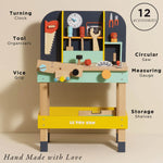 Packed with realistic features that budding builders will love, the base is equipped with a flatbed circular saw, a measuring gauge and a vice whilst the back wall features a tool shelf and hooks. Plus there's a storage tray underneath too - perfect for storing all those bits and bobs that need fixing.
