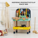 Let's fix it! Alex's Work Bench is a sturdy workbench full of surprises. Part of Le Toy Van's award winning collection, this brightly coloured toy is lovingly crafted from durable and sustainable wood. Painted in non toxic water-based hues, it is built to last and ready for play.