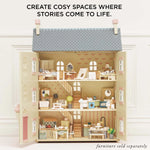 The Cherry Tree Hall Manor Wooden Doll House comes unfurnished, ready for little ones to decorate to their hearts desire. Shop our full range of beautiful accessories, furniture and dolls.
