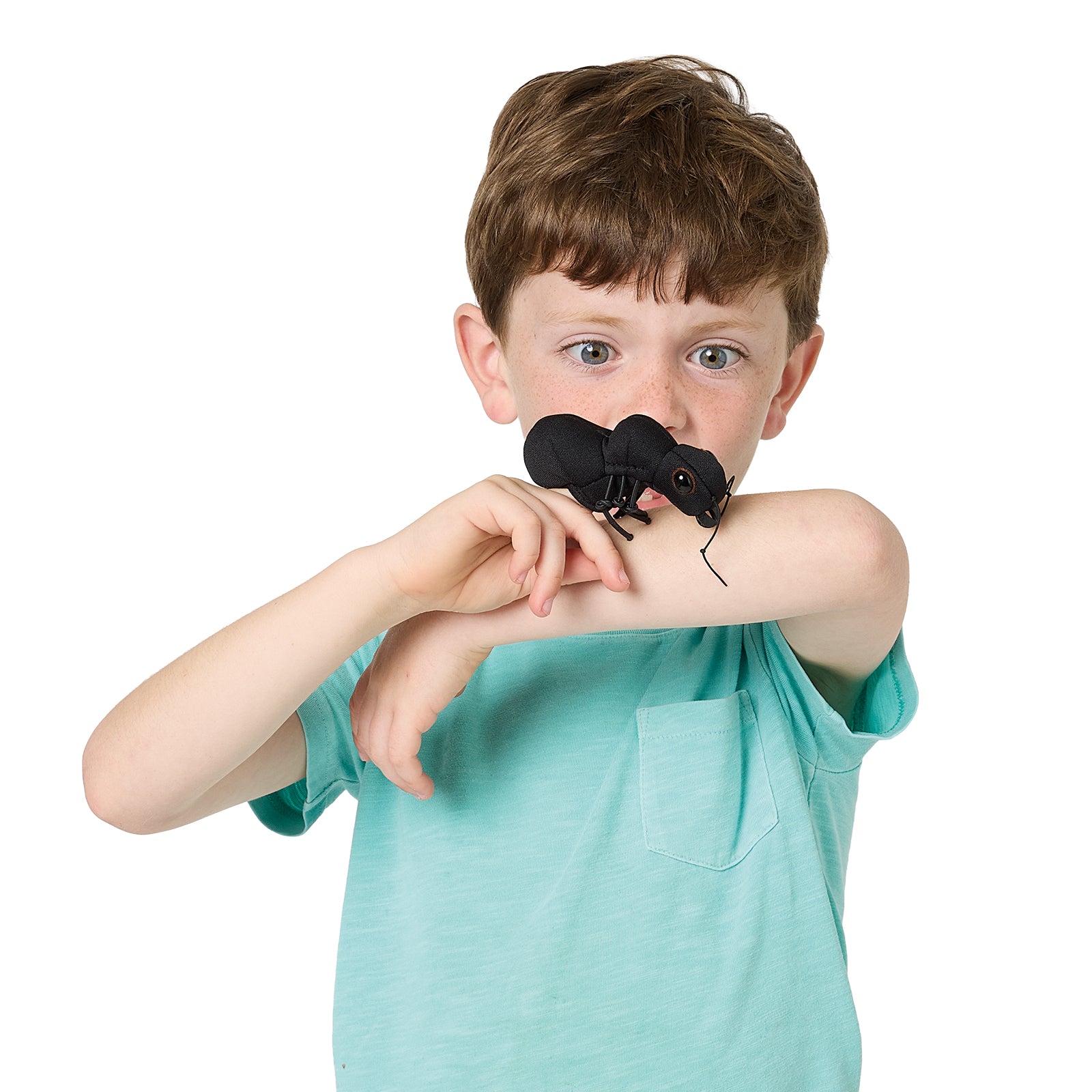 Pack a picnic in your pocket with the sleek black Folkmanis® Mini Ant finger puppet. Slip the industrious insect onto your finger and march into storytelling with lively charm.