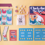 Cluck, Cluck! the Fox! Cooperative Game featuring illustrations by Txell Darne / Can Seixanta. Help the farmer protect the henhouse from the hungry fox!