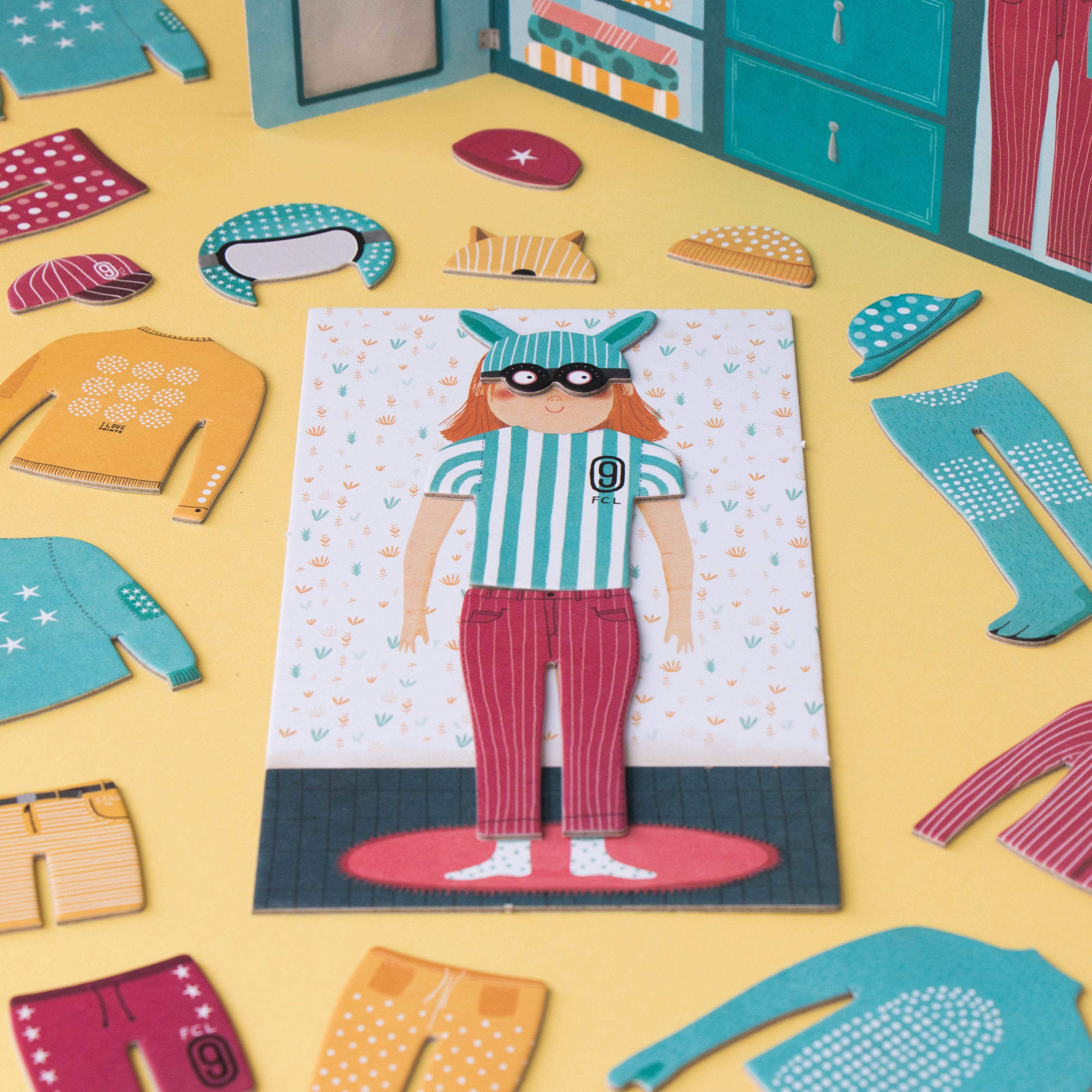 Dress your character as creatively as you can and hide it behind the dressing room. Your opponent, through different questions, has to guess how you dressed him. If he guesses correctly, he wins!