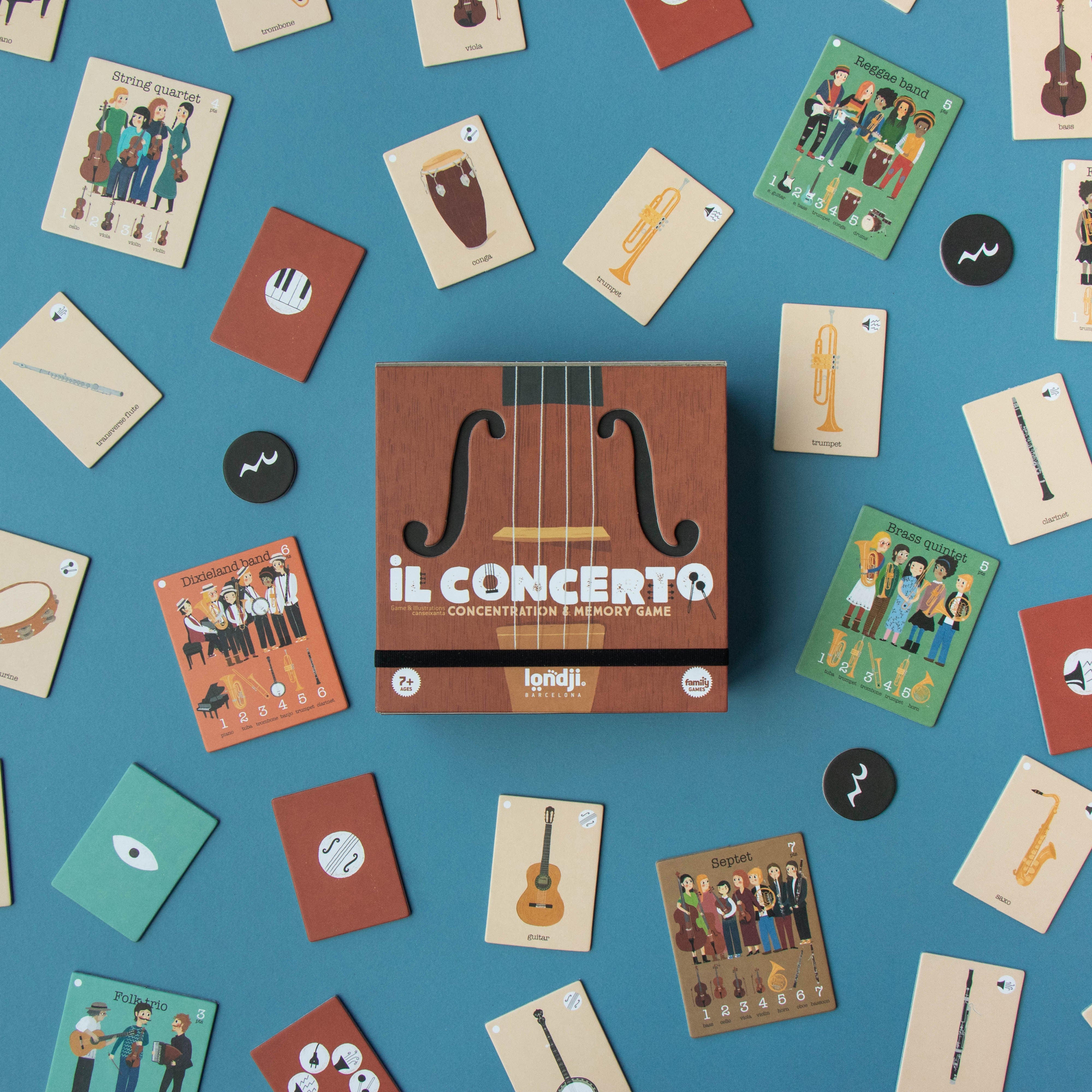 il Concerto Concentration & Memory Game for ages 7+: Concentration & memory game created by Londji and illustrated by canseixanta. Memorise where the instruments on your music group card are and complete as many as you can. A concentration game for 2-6 players ages 7years+