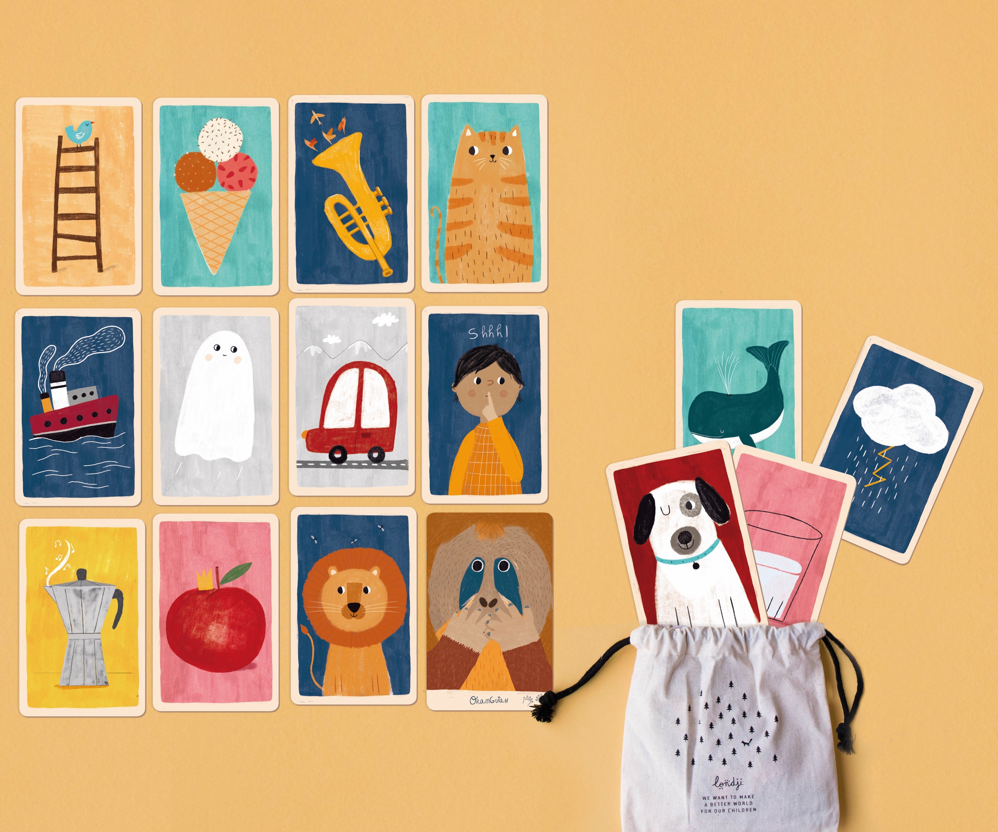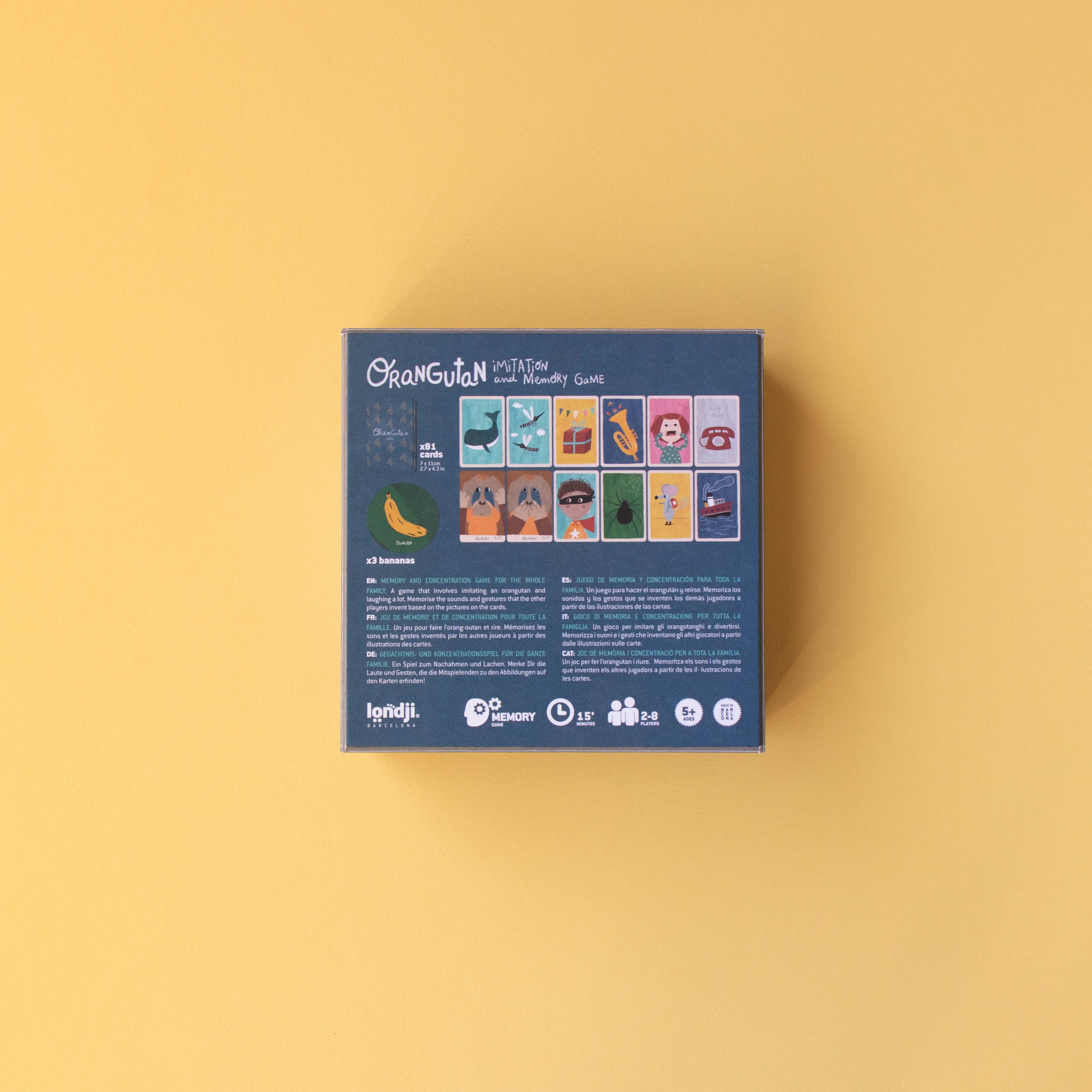 An exciting sound and gesture card memory game for the whole family to play. Catch all 3 orangutans before the bananas run out! Designed and manufactured in Barcelona.
