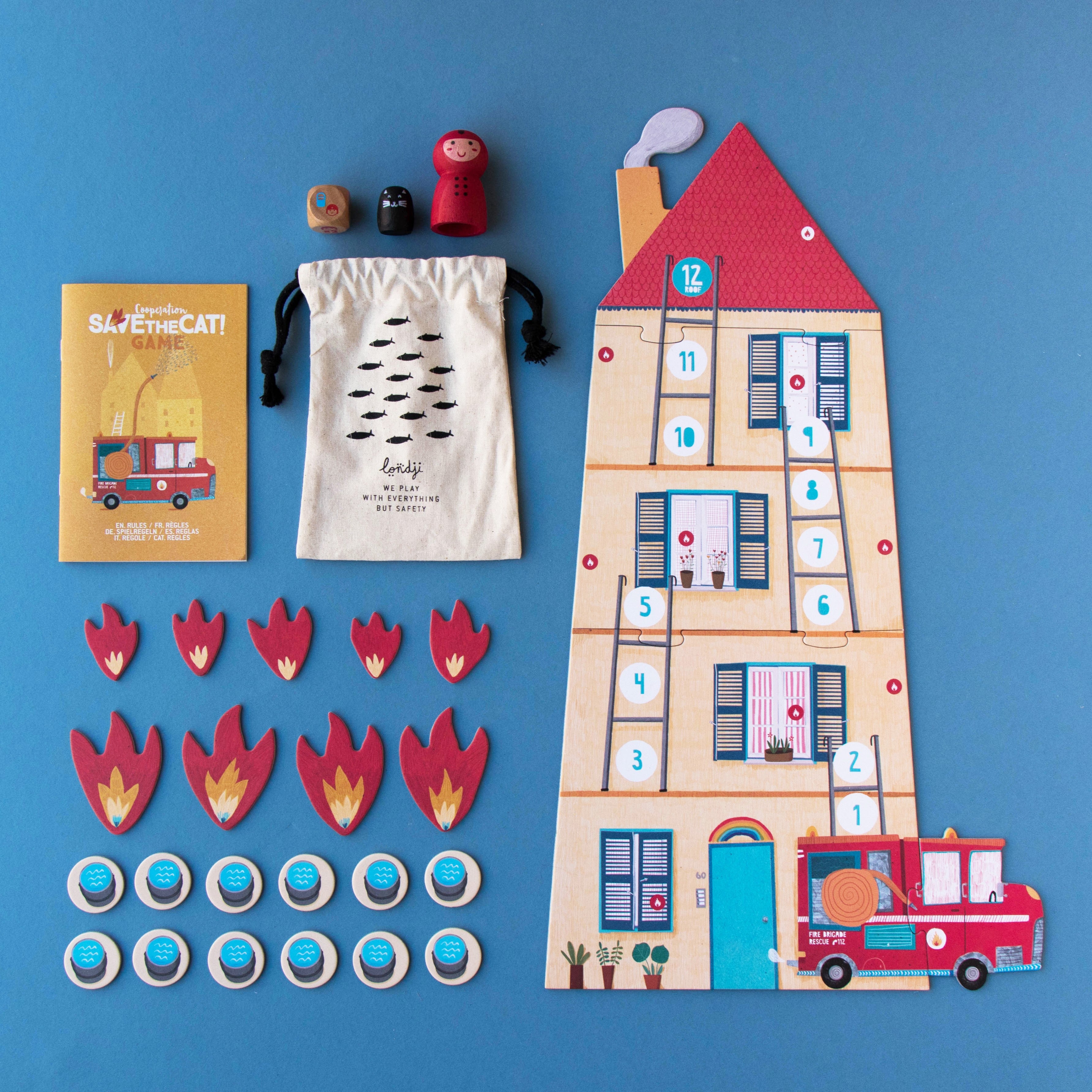 A cooperative game in which we help the firemen to put out the fire in order to save the kitten that has been trapped on the roof.