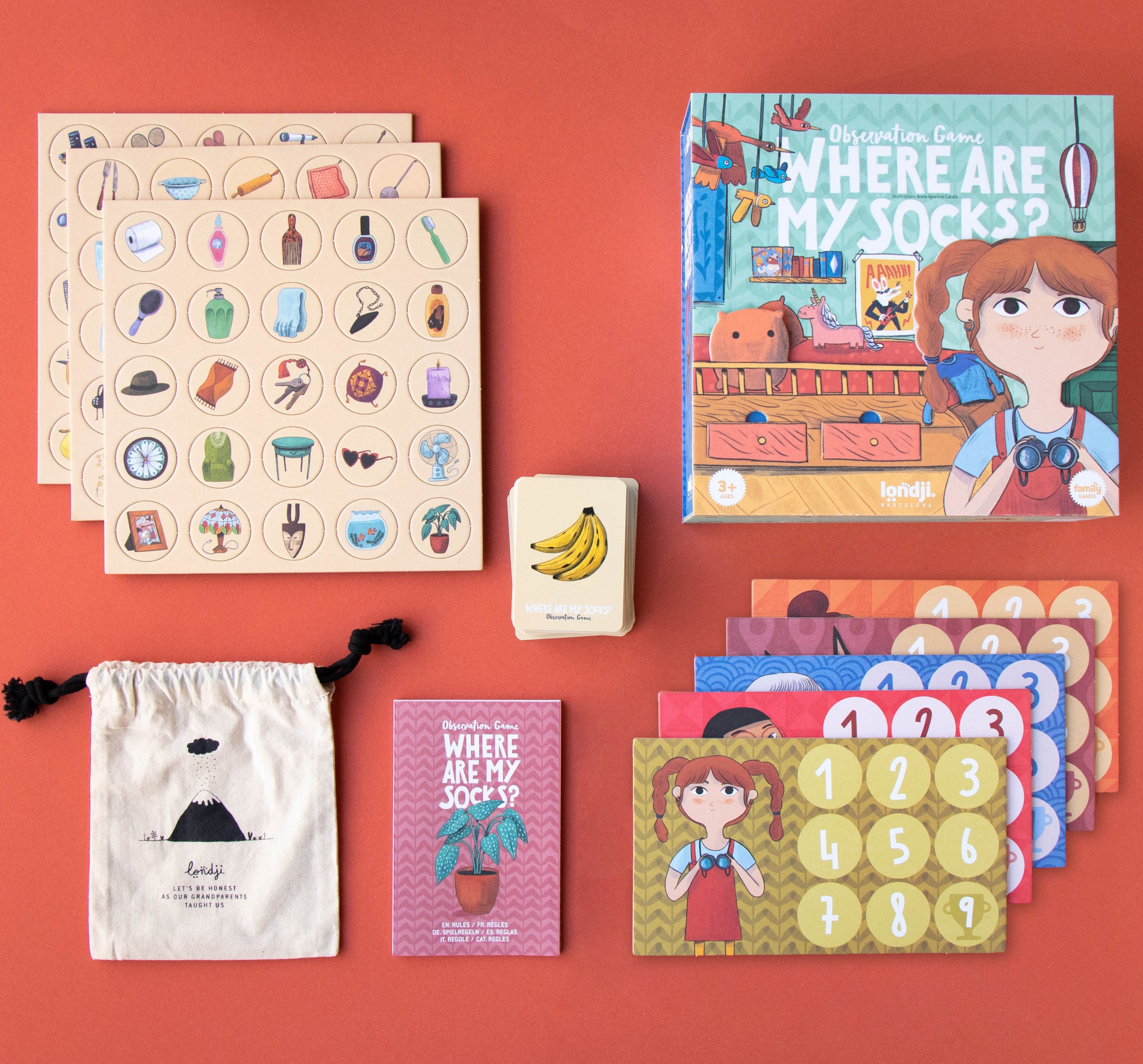 A game of observation, attention and speed for the whole family with 2 ways to play. Time to tidy up! Be the first to find the objects shown on the cards or game board.