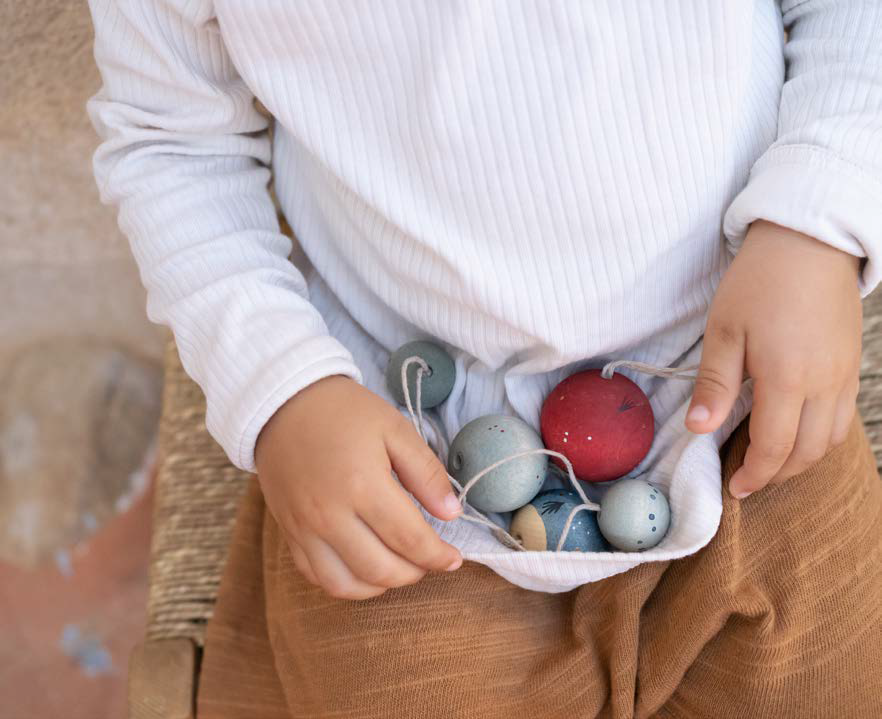 5 pieces with spheril shape, painted by hand. Includes thread for hanging.From 25mm ø to 40mm ø