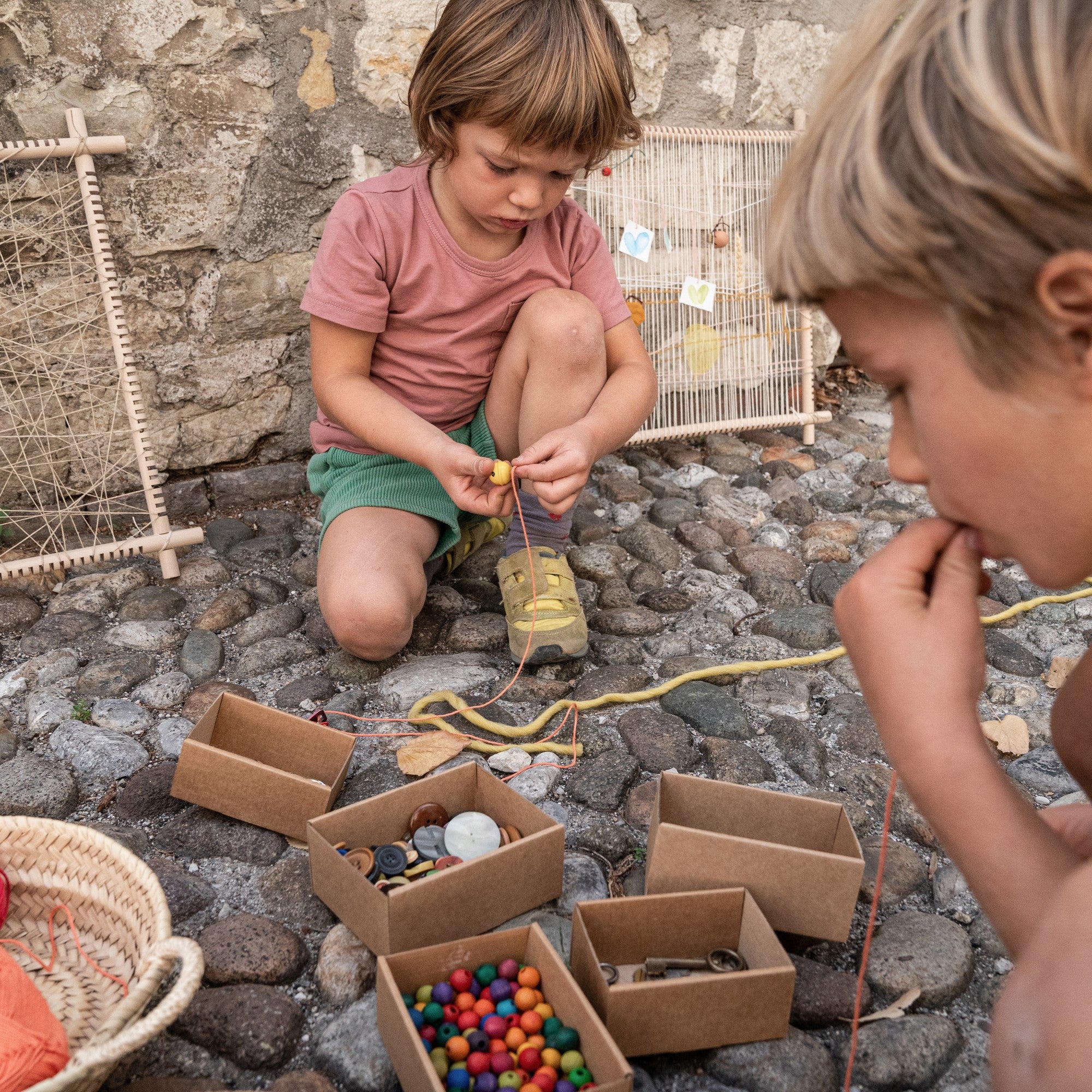GRAPAT provides material without instructions, open-ended and autonomous play. Their only premise is to let children play, slowly, without time limits. Grapat hand crafts materials that encourage, invite and stimulate the creation of invented little worlds. Grapat is made following traditional processes, in the old way, with thick soft raw materials, natural dyes which let the wood veins be seen and vibrant coloured waxes and oils that slightly shine. The products are painted by hand, homemade, surrounded by nature and many children nearby that inspire the makers daily.