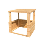 3-sided cedar pavilion is a stand-alone shelter featuring 1 large open side and 3 'windowed' sides. Alone the pavilion is a wonderful shop, home, theatre, restaurant etc... The Just Playing pavilion is also a perfect addition to the Just Playing Playhouse. The windows align perfectly to create an inviting 2 or 3 room bungalow or a 2 or 3 side-by-side condo/apartment complex.