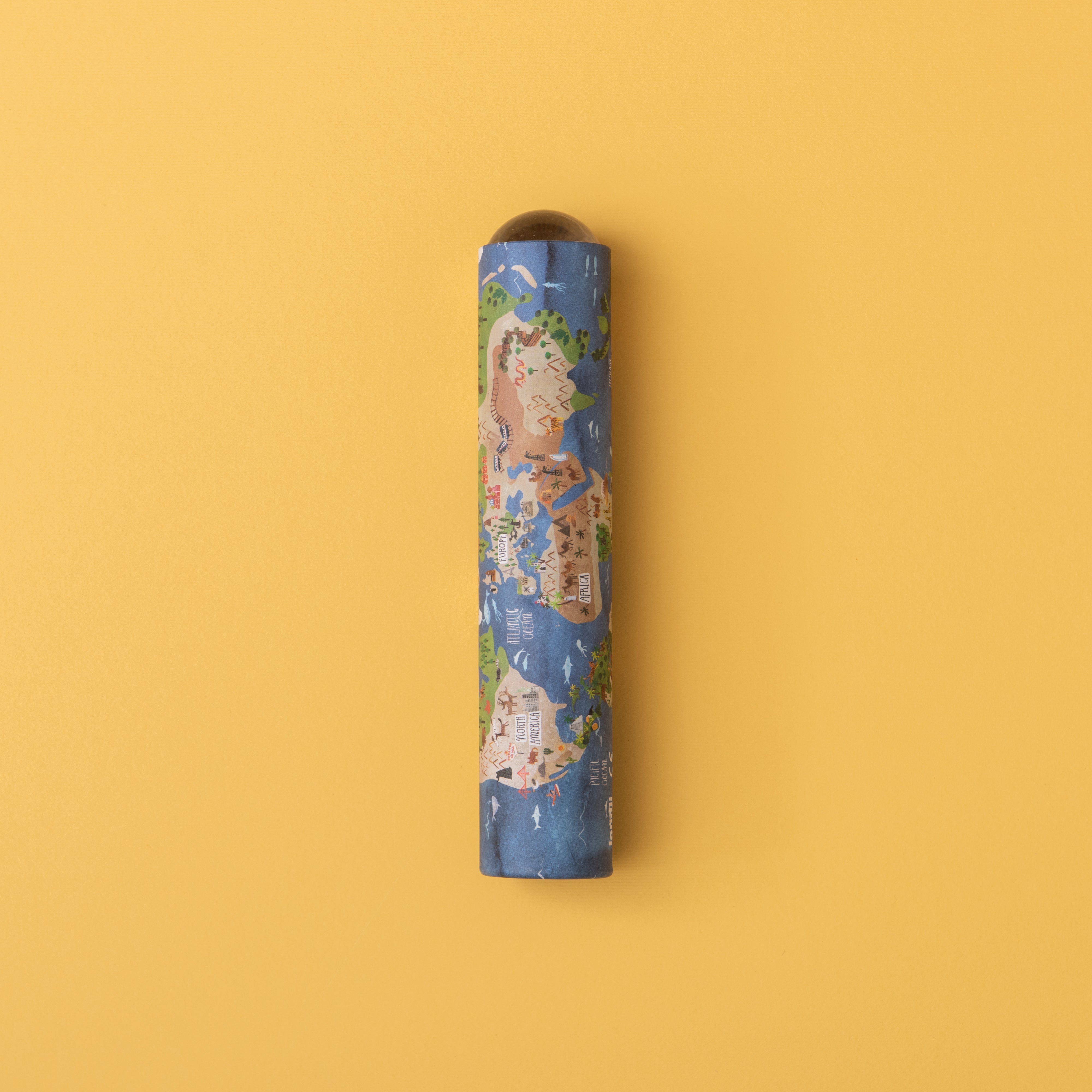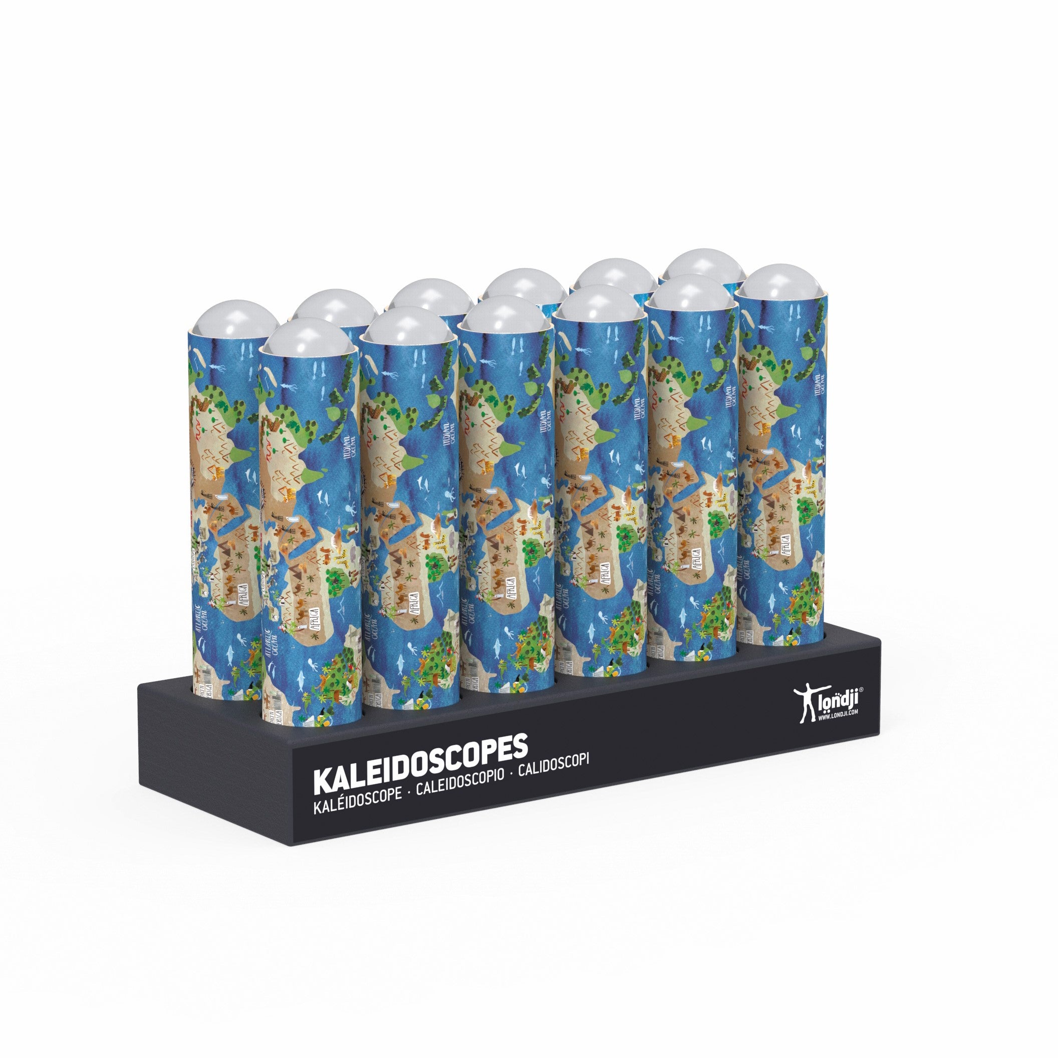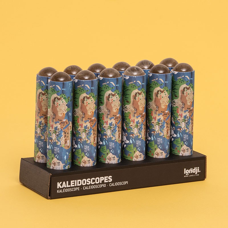 Londji's World Kaleidoscope. A different kaleidoscope that reflects outside images in kaleidoscopic forms. It is decorated like our own vision of the Earth.