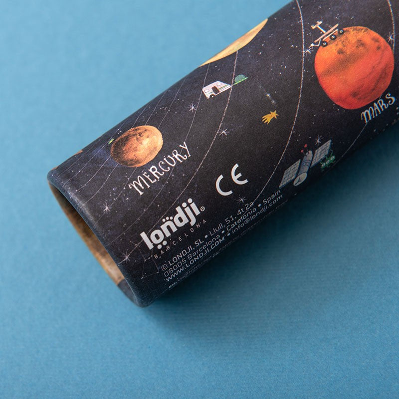 Londji's World & Planets Mix Kaleidoscope. A different kaleidoscope that reflects outside images in kaleidoscopic forms. A mix consisting of 6 units of World kaleidoscope and 6 of Planets kaleidoscope. Illustrated by Carmen Saldaña