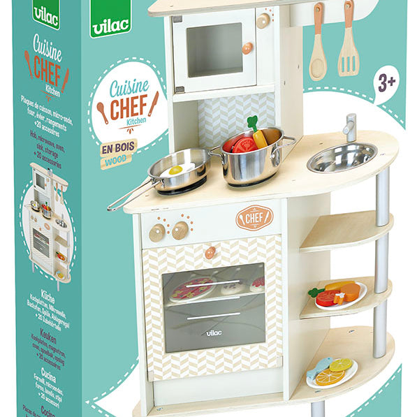 Wood Chef's Kitchen by Vilac. Some assembly required. Includes: 20 pieces.