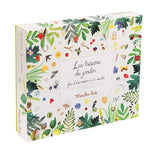 Ce jeu d'observation Les tresors du Jardin de Moulin Roty se compose d'un plateau magnifiquement illustre d'oiseaux, de fleurs, d'insectes et de plantes, de 24 planches a theme, de 200 cartes illustrees aux motifs du plateau, 24 pions colores et d'un sac en tissu pour les ranger. Ce jeu de societe peut se jouer de 2 facons de 2 a 4 joueurs ou de 2 a 6 joueurs. Dans la premiere facon, les joueurs doivent retrouver les 6 illustrations presentes sur leur planche a theme le plus rapidement possible. Dans la deuxieme facon de jouer, un joueur pioche une des 200 cartes, la premier a trouver l'illustration de la carte sur le plateau a gagne! Des 4 ans, ce jeu convivial permettra a votre enfant de stimuler son observation et sa concentration. Ideal pour passer un bon moment en famille ou avec les copains.