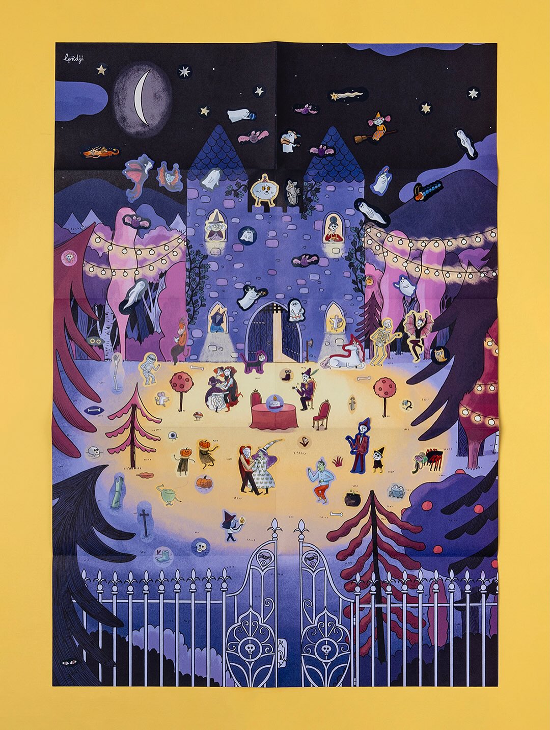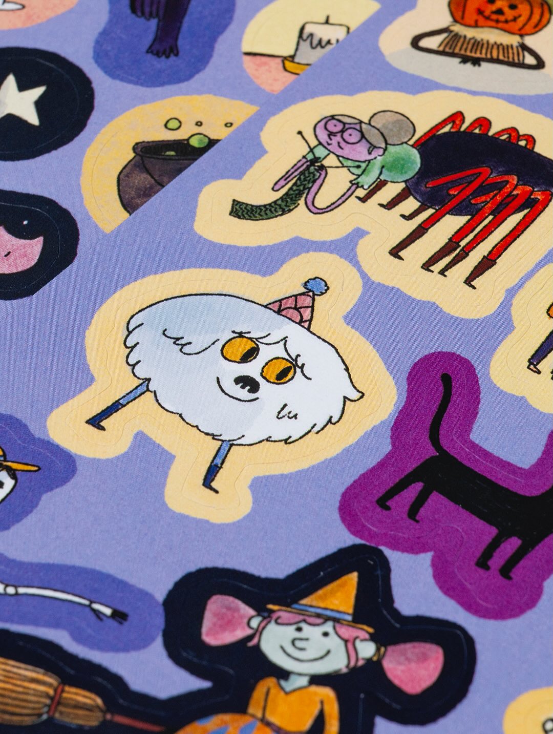 An activity with 152 monster and ghost stickers and a poster of the enchanted castle. A very fun sticker-placing game! Sustainable and locally made.