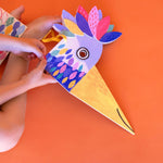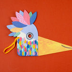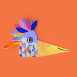 Bird mask with 150 stickers to decorate. Ideal as a costume. Made of cardboard. Sustainable and locally made toy.
