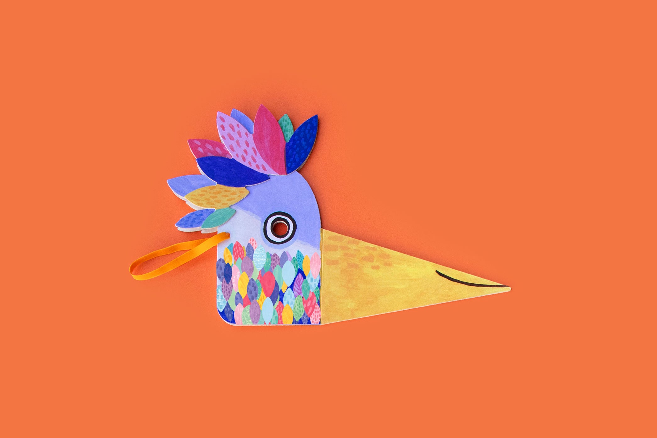 Flap, flap! Spread your wings and let your imagination soar! Decorate your bird mask with colorful stickers and transform into the wildest and most creative creature. Feathers, shapes, and fantasy… everything is in your hands!