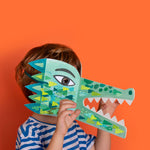 Crocodile mask with 150 stickers to decorate. Ideal as a costume. Made of cardboard. Sustainable and locally made toy.