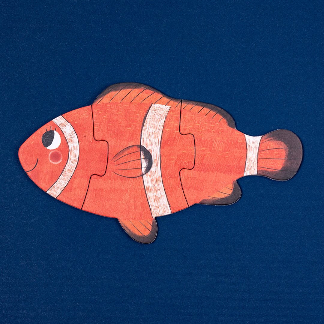 7 reversible and progressive puzzles with 2, 3, 4, and 5-piece figures for little ones to discover sea animals. Sustainable. Ideal as a first puzzle.