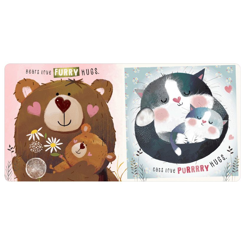 Enjoy this heartfelt touch-and-feel book, celebrating the loving hugs of all kinds of adorable and funny animal moms and babies. From furry hugs to purry hugs, tiny hugs to shiny hugs, and everything in between, we are reminded that a mom’s love comes in all sorts of wonderful shapes and sizes!