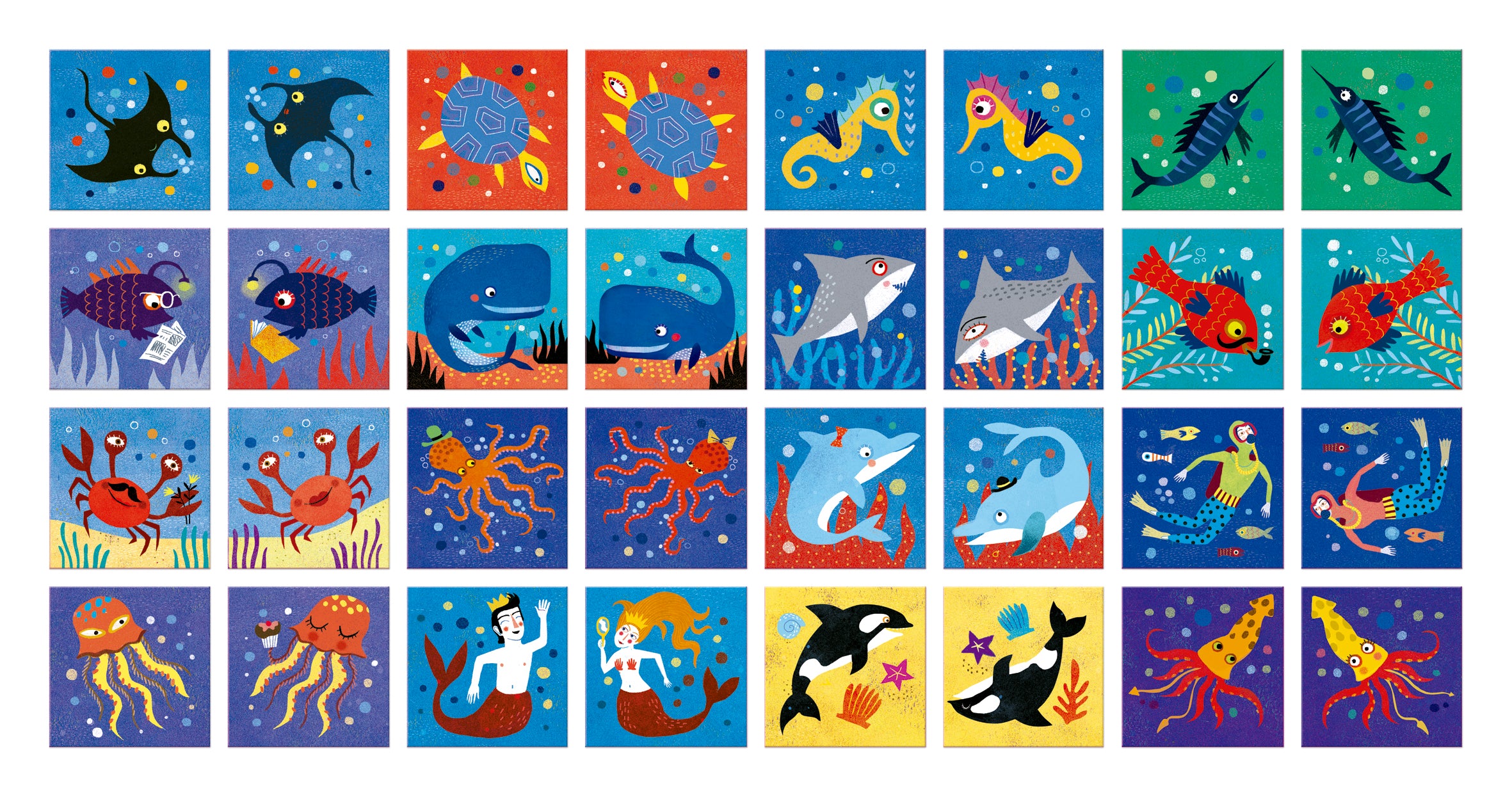Ocean-themed memory game featuring illustrations by Mariana Ruiz Johnson and made in Barcelona by Londji.