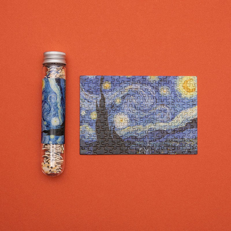 In line with our motto “Toys for kids from 3 to 103 years old” we present a difficult and challenging puzzle, made of 150 minuscule pieces. This is a real challenge even for the cleverest people in the house. The pieces are so small that the puzzle fits into a test tube measuring 16cm tall and 2,5cm in diameter. Each puzzle measures 10 x 15cm. Difficulty level: Hard