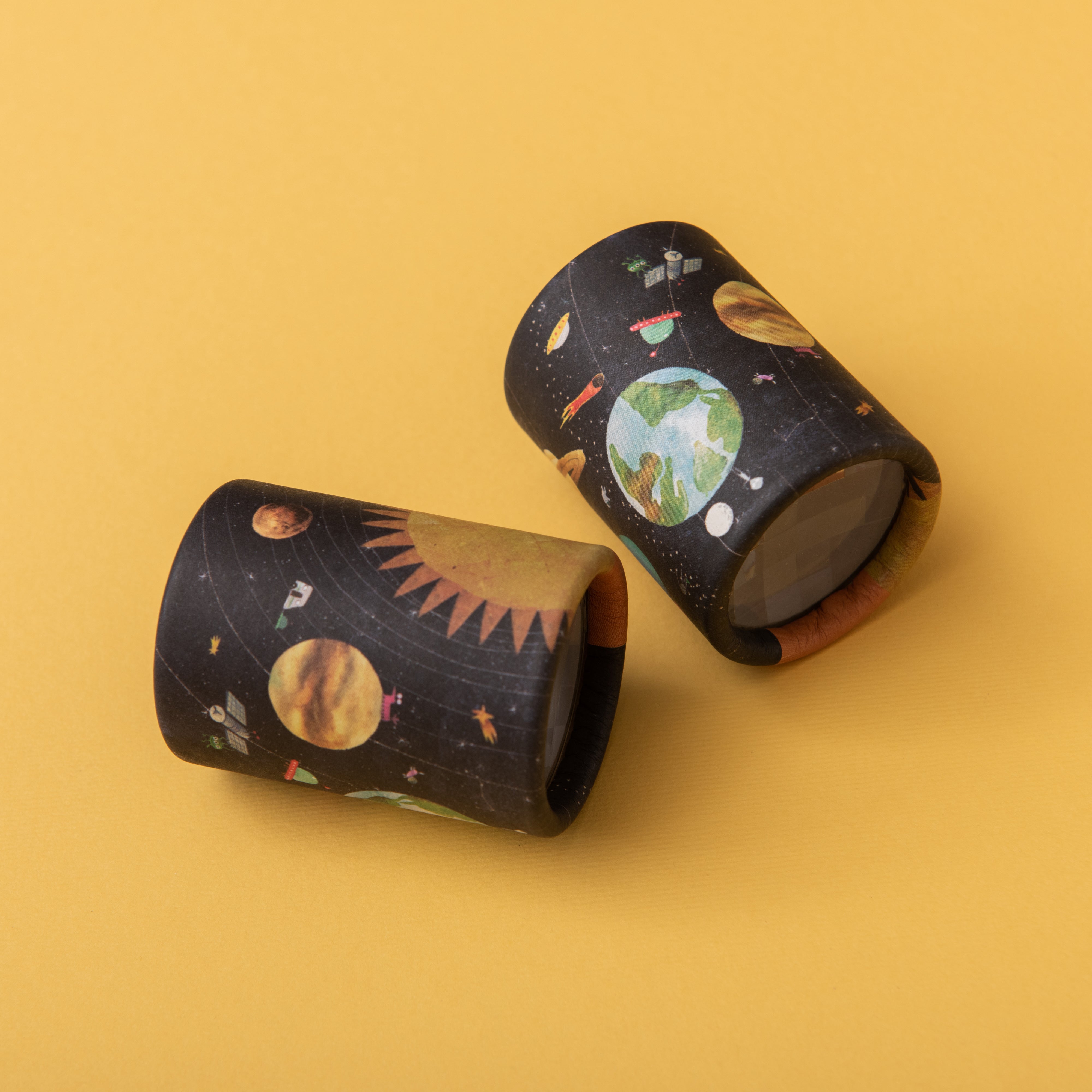 From Jupiter to Mars, from Uranus to Saturn, from Earth to Venus. Travel through the solar system with this Londji mini kaleidoscope. Featuring artwork by Carmen Saldaña.
