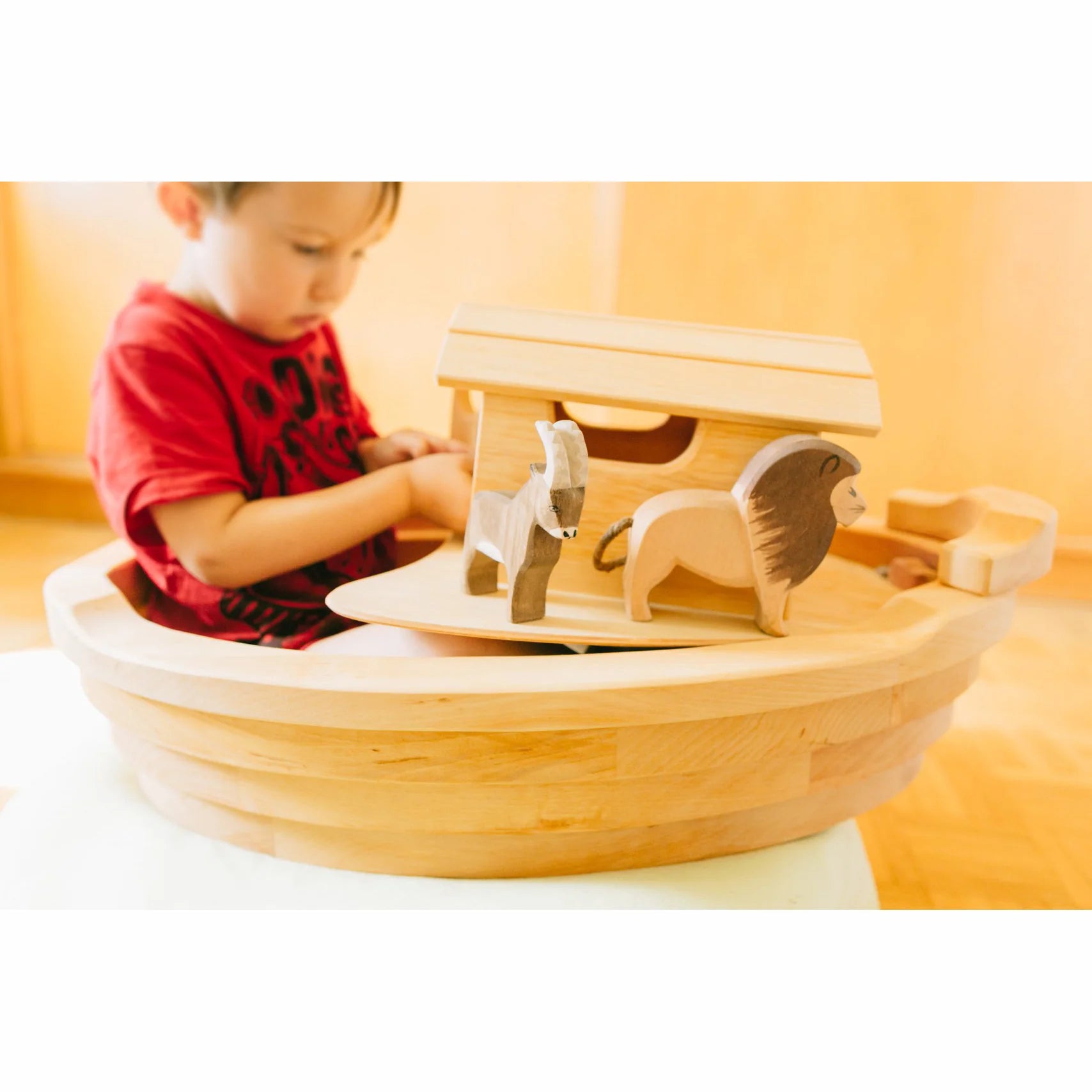 Ostheimer figures are made entirely by hand in Germany. The high quality of environmentally-friendly Ostheimer wooden toys is based on the use of certified materials. The warm, natural material of wood comes from sustainable domestic forestry and certified organic wood, and the selected childsafe colors and organic oils preserve the natural characteristics of the wood and make it tangible for the child. Many senses are thus involved: the grains of the surface of the wood, the smell of high-quality oils, the beautiful sight for the eye. Artistic and practical designing and painting have a focus so that the characteristic peculiarities of an animal's very typical appearance, in short its spirit, are expressed in it. This is so achieved, not in merely the naturalistic depiction that each outer detail creates, but rather the shapes and painting are deliberately limited to essentials; something special from the character and gesture of an animal or a human figure. The child is not getting something finished in the hand, not a detailed snapshot of a trotting horse with defined eyelashes and facial expression - rather, an Ostheimer wooden figure leaves the child completely immersed in the exciting world of "horse" and gives their imagination much space for play, again and again new scenes and situations to make: as the horse is galloping, standing, neighing, nestling their head against me or it lies down to rest. The design of Ostheimer figures can behave in typical fashion in their movement, as they can look at any moment quite different. All that is in the restrained design of the wooden figure in it, and the child can bring it out, imaginative play coming to life.