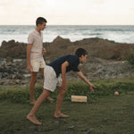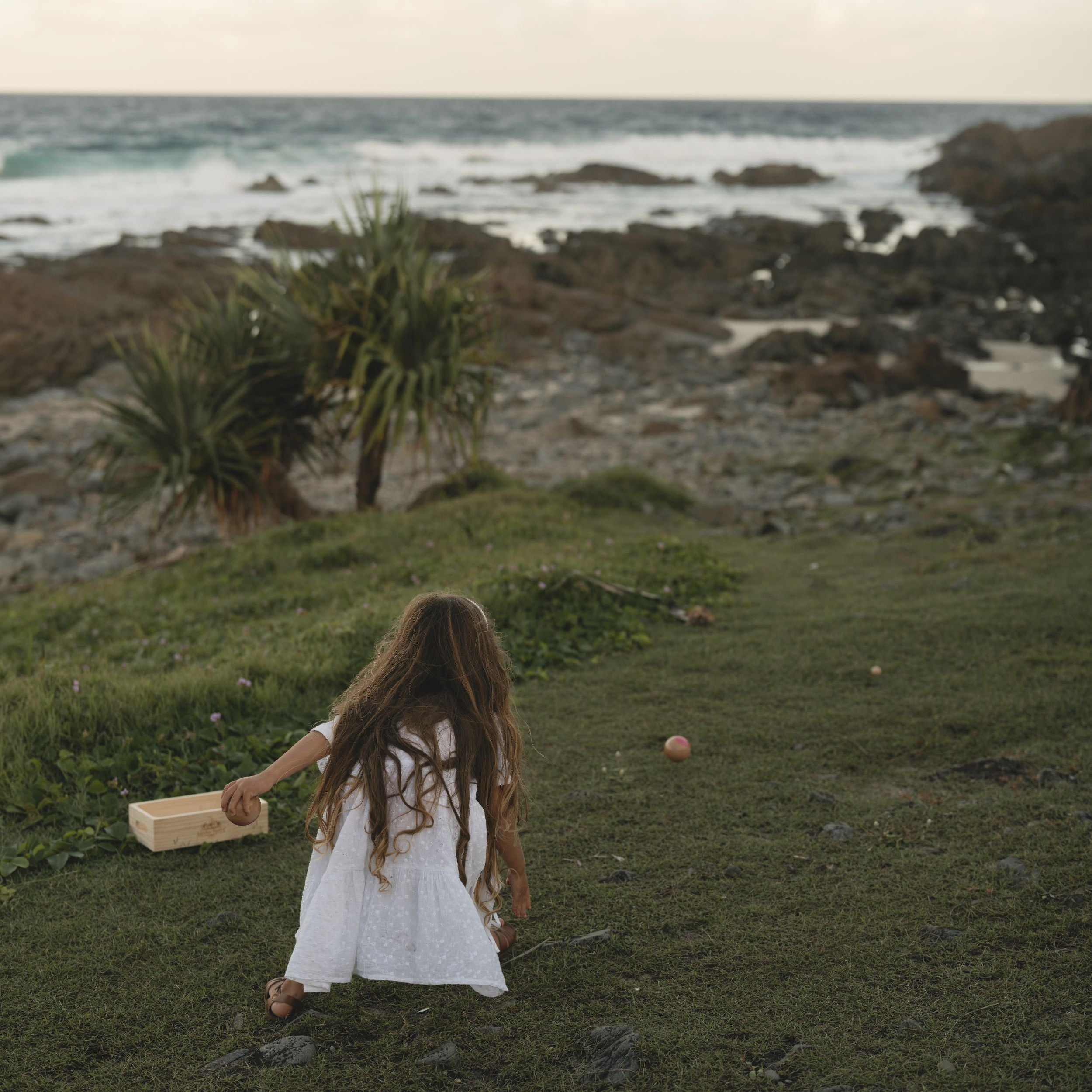The Kinderfeets Boules Set features 8 large wooden balls in various colours, 2 small balls, and a wooden crate for storage. The balls are crafted from responsibly-sourced beechwood and are intentionally smaller than standard sets, making them lightweight and child-safe. The wooden storage crate is crafted from New Zealand pinewood and serves as a carrying case! Enjoy both outside and in, but be sure to store the set indoors after use to maintain quality.