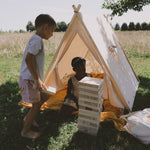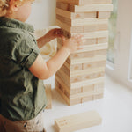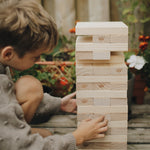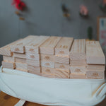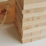 Crafted from natural pinewood, which is known for its durability and longevity. The set includes 54 blocks in total and features a 100% cotton bag for storage. Enjoy the game both outside and in, but be sure to store the set indoors after use to maintain quality.