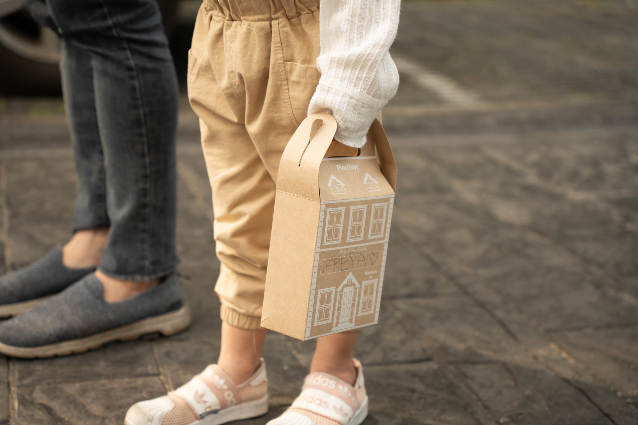 Take-home boxes come in packs of 20. The display requires 1 PlanToys master carton to stand independently, so order accordingly and save your boxes. It is recommended to weigh the box down or store theproduct in the display to refill. The display can fit 88 pcs comfortably.