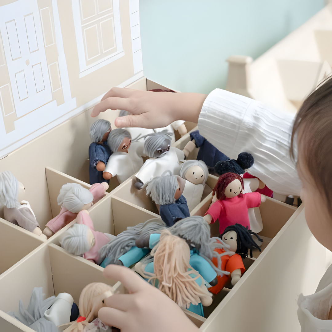 on a table top. It is an inclusive display to allow families to come in and select figures that