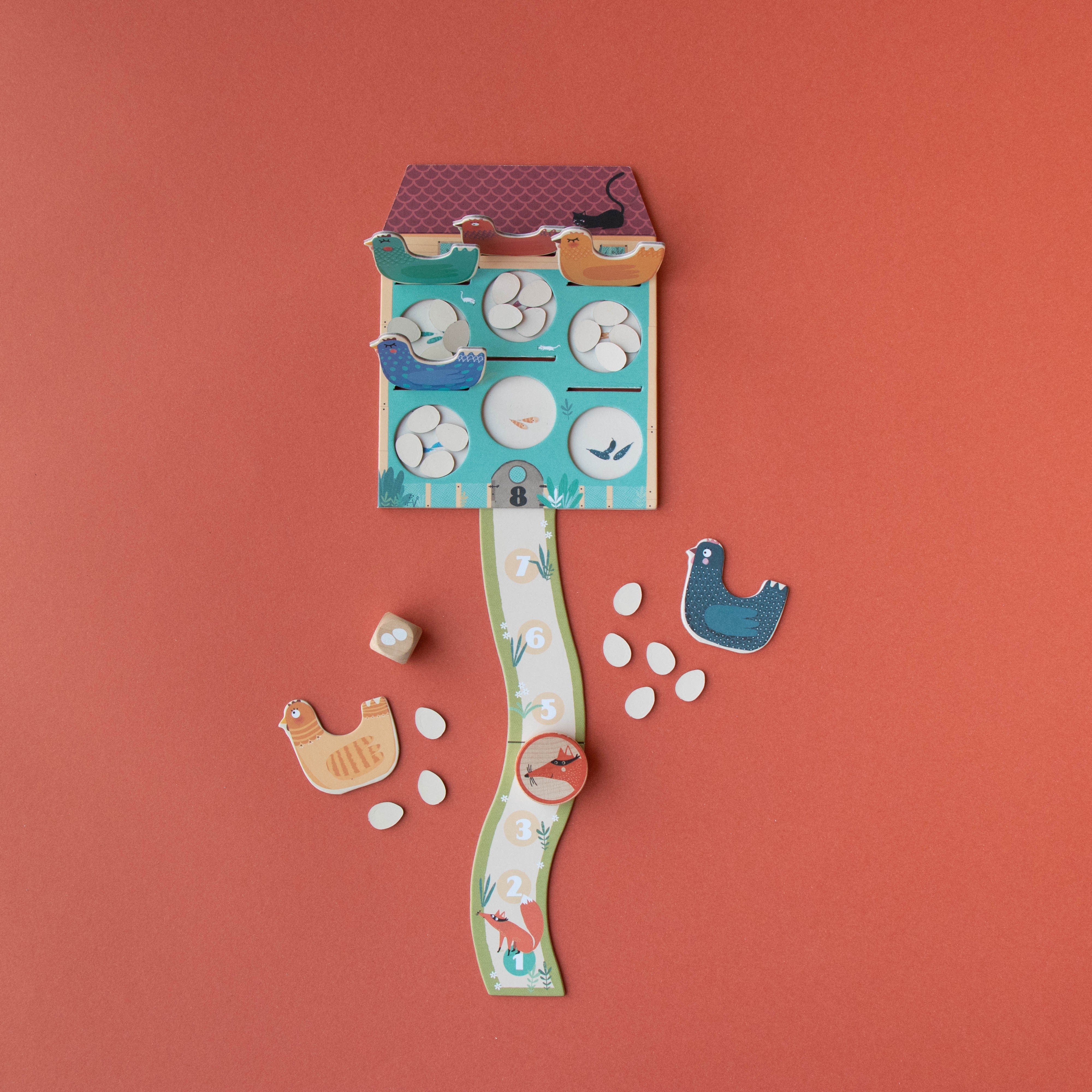 A co-operative game for the whole family. Help the farmer to protect the henhouse from the hungry fox! Made in Barcelona with illustrations by Can Seixanta.