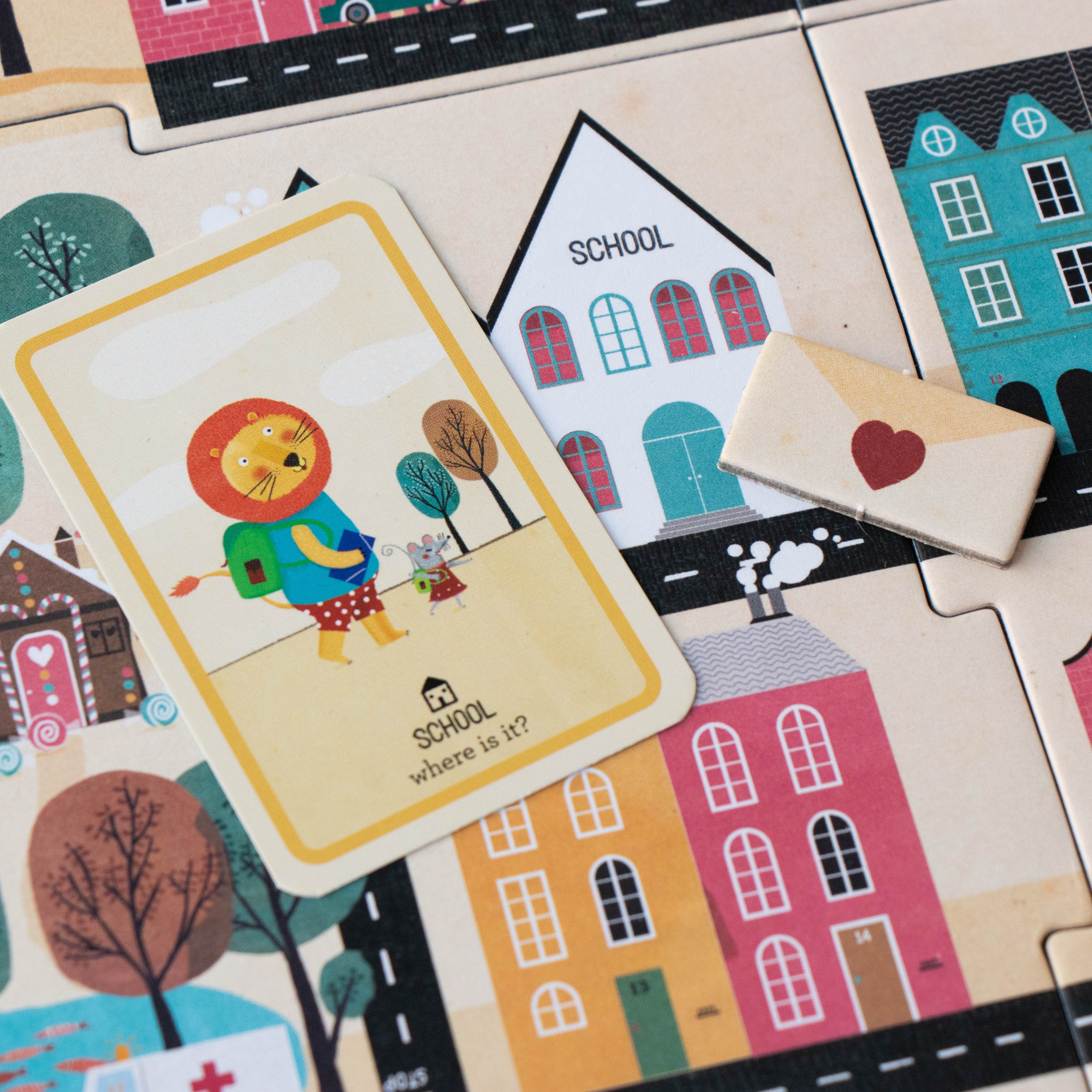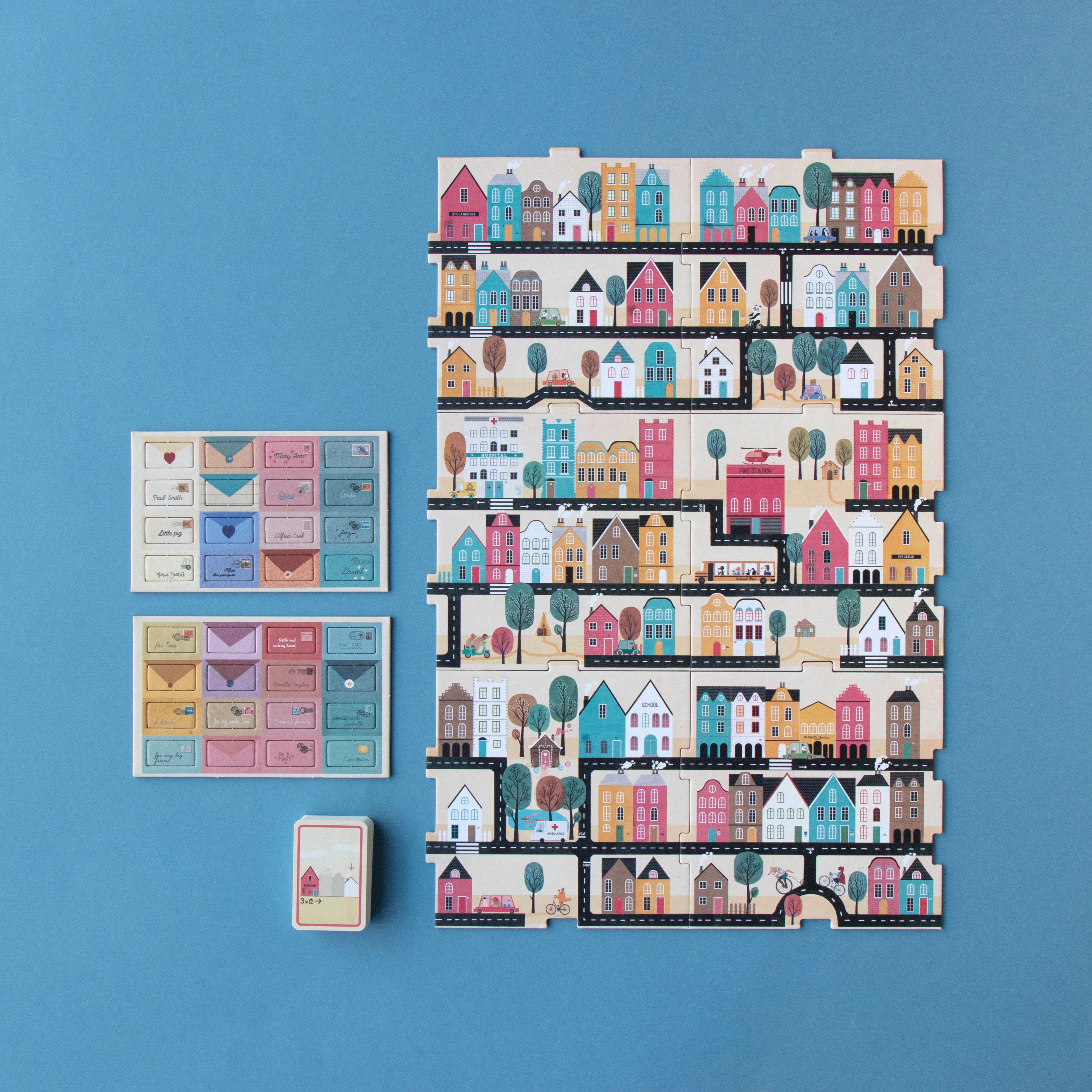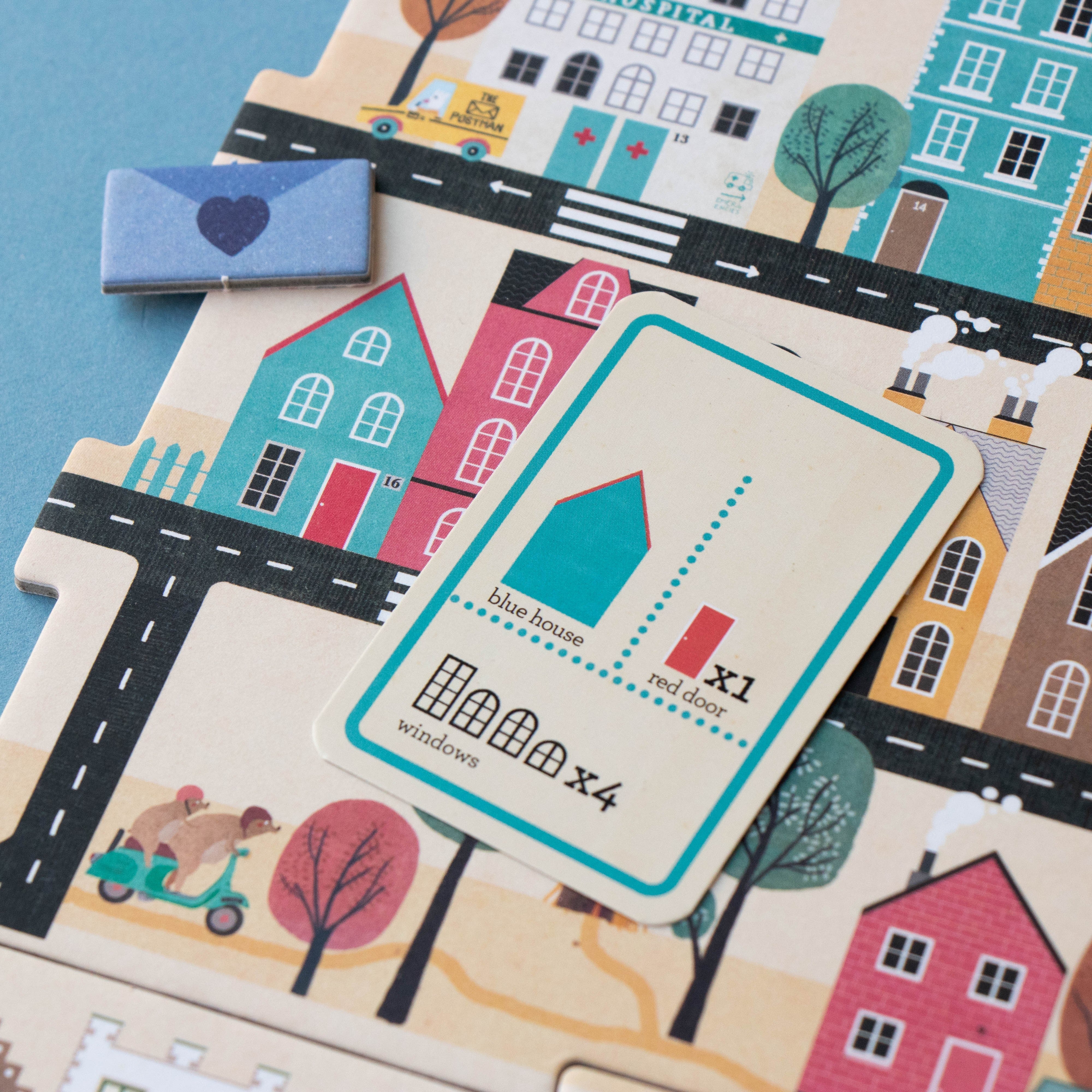 Londji's postman has a lot of work handing out all the letters. The quickest player in finding the neighbours to whom belong the letters, will be the winner! An observation game for the whole family.