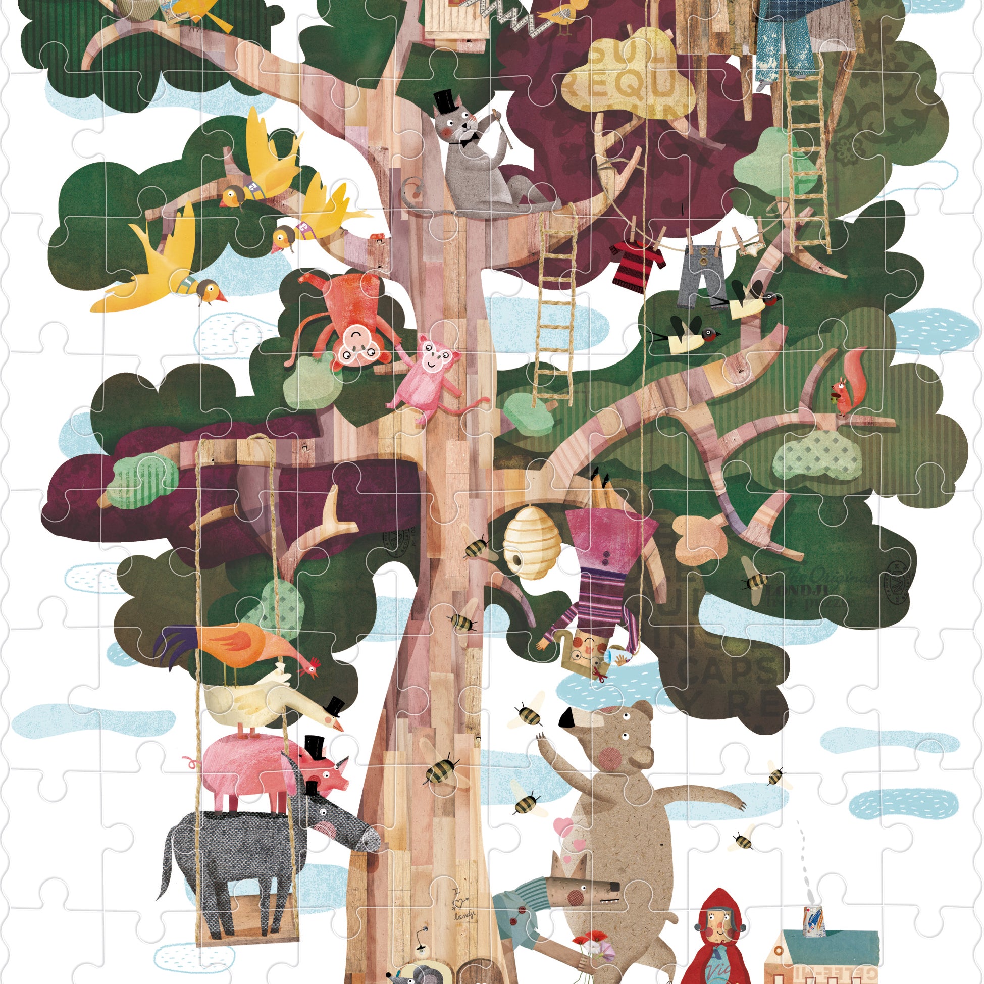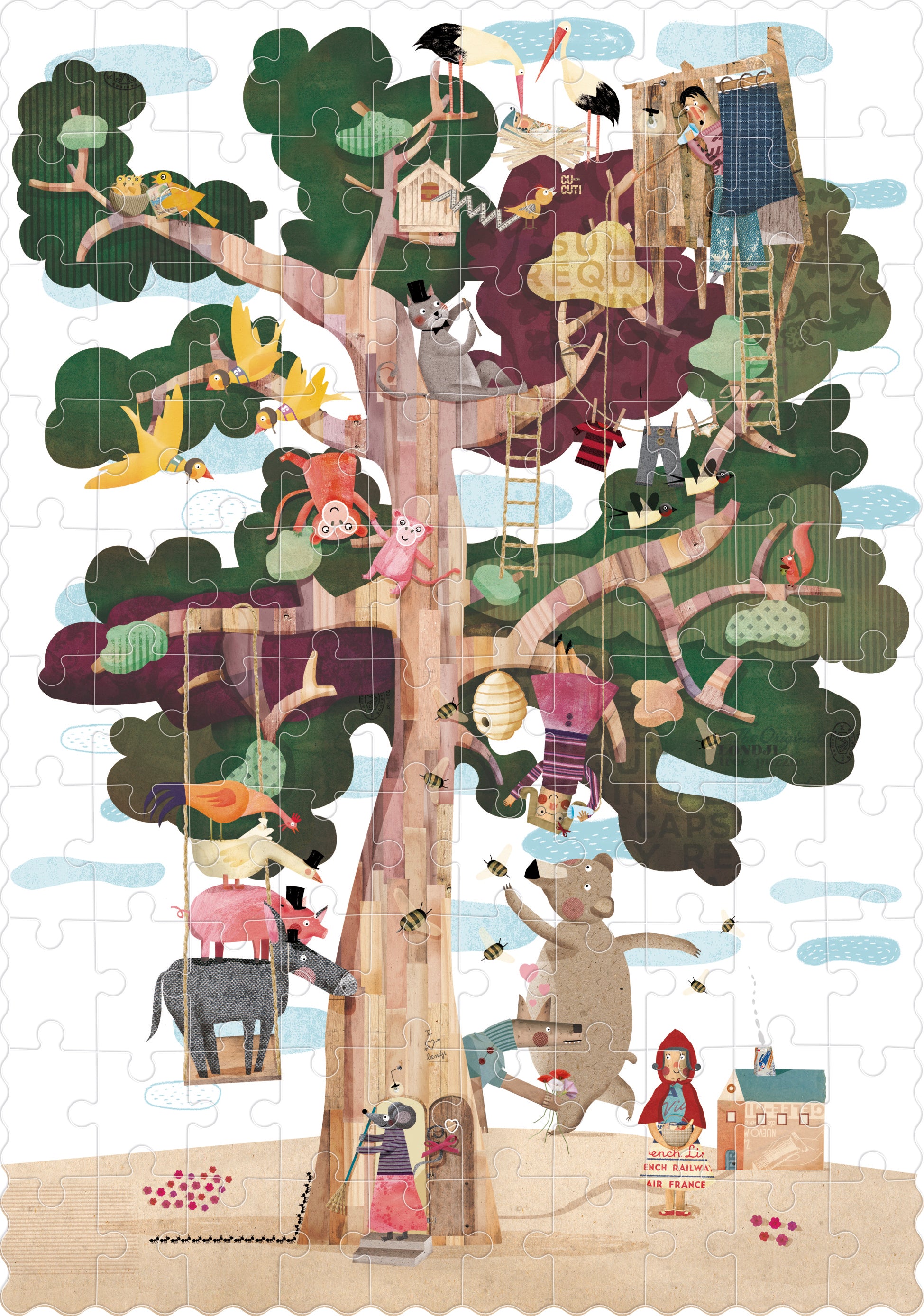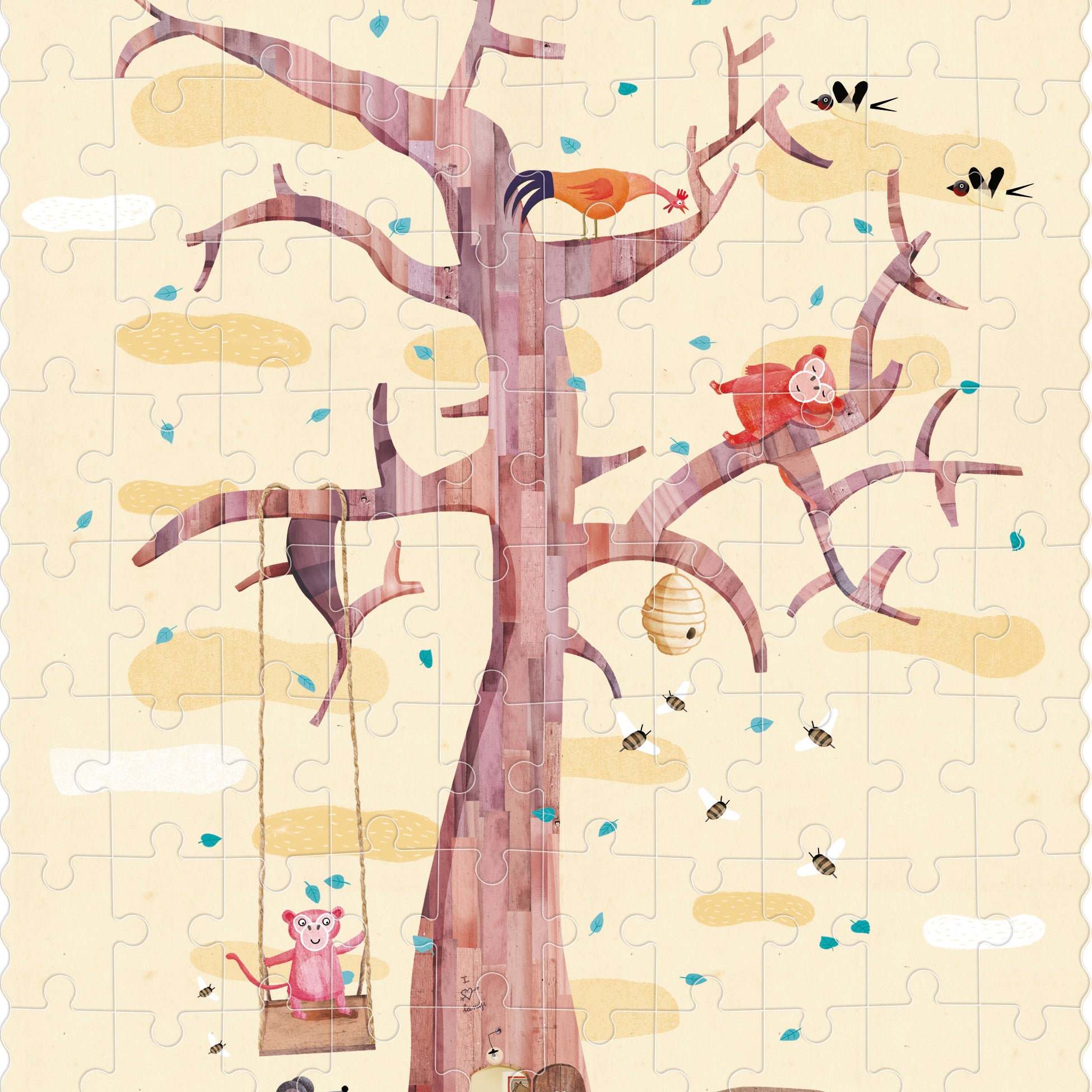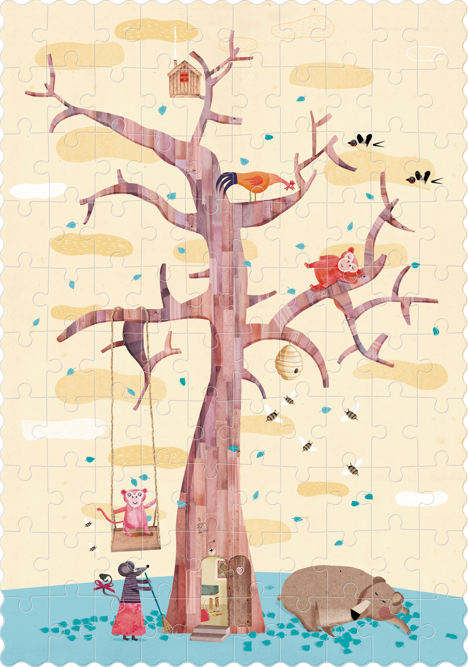 "My Tree" is a 100-piece reversible puzzle that shows two scenes, one on a tree in autumn and another on the same tree in spring where we will meet many friends to play with!