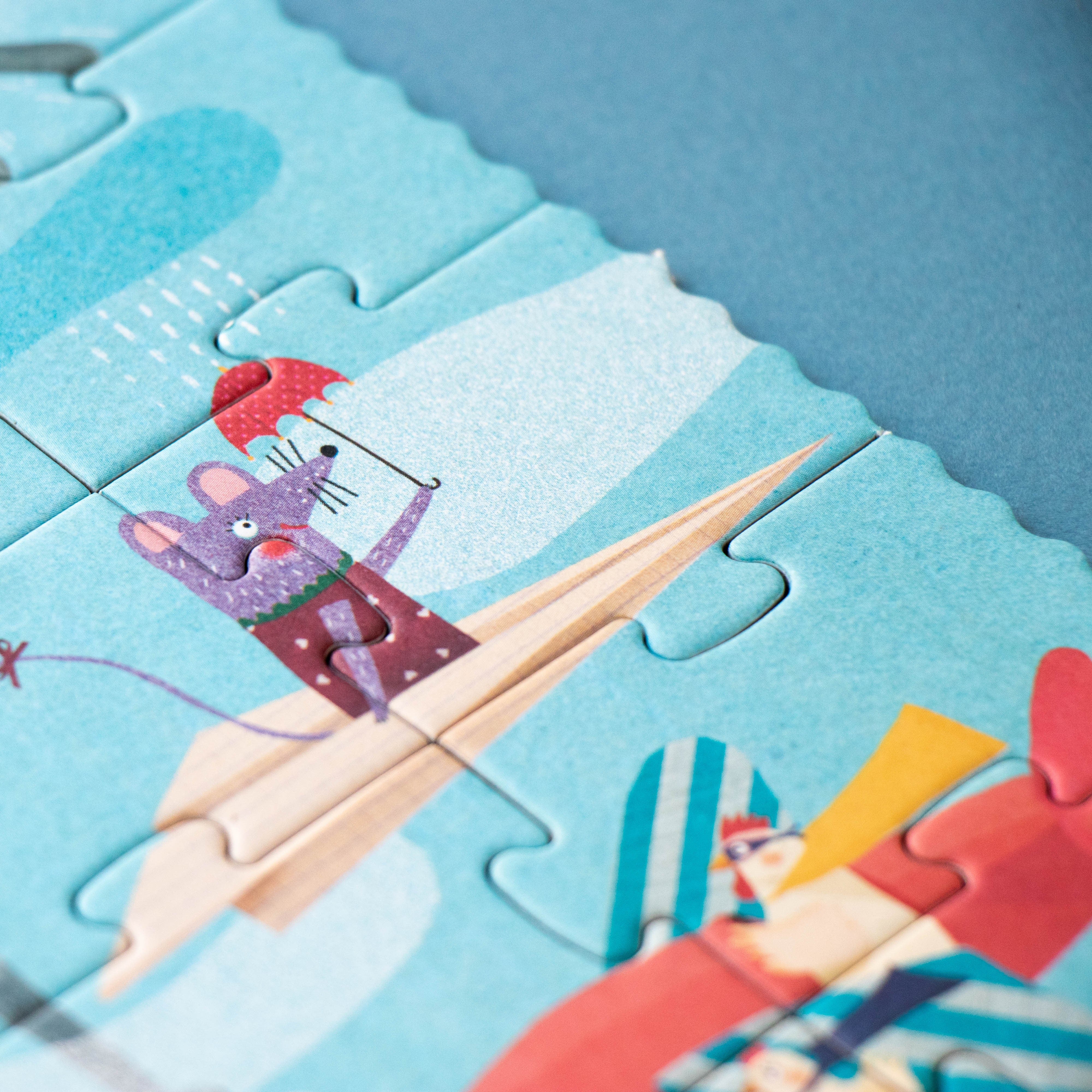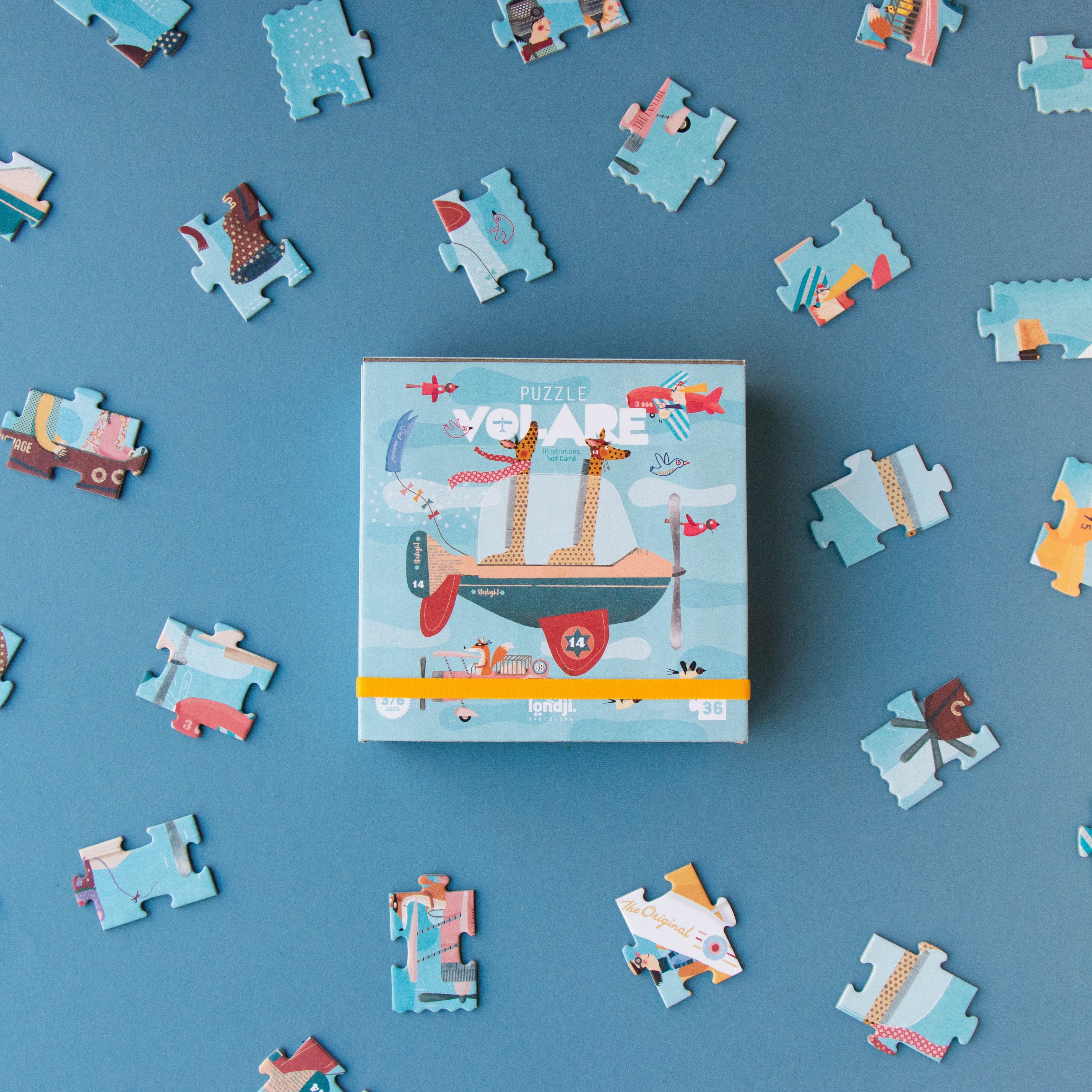 At Londji we always liked to let the imagination fly, that’s why we’re now on a plane to discover new horizons. Do you come with us? 36 piece puzzle made with recycled cardboard and FSC paper. Packaged in sturdy cardboard box. Made in Barcelona. For ages 3-6.