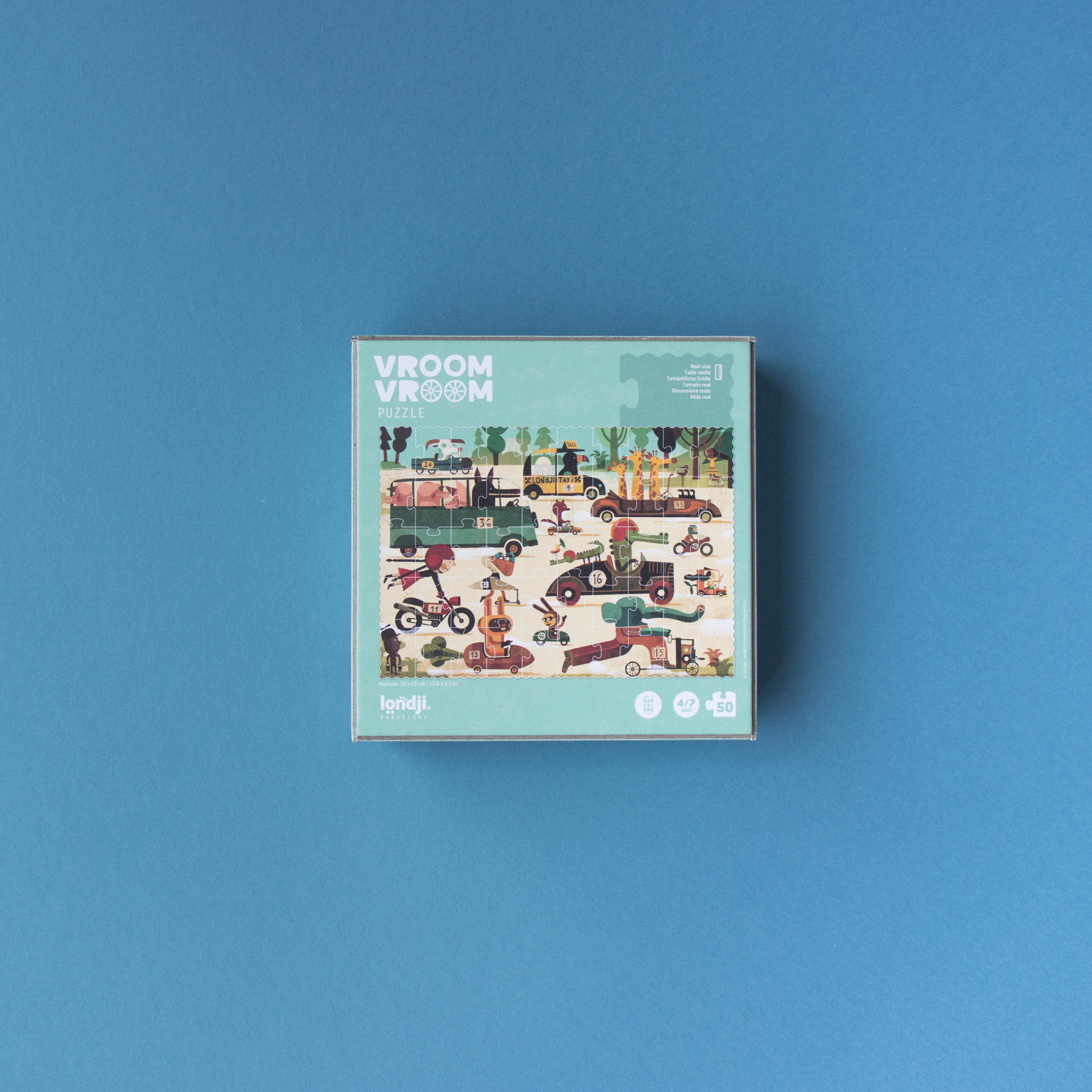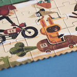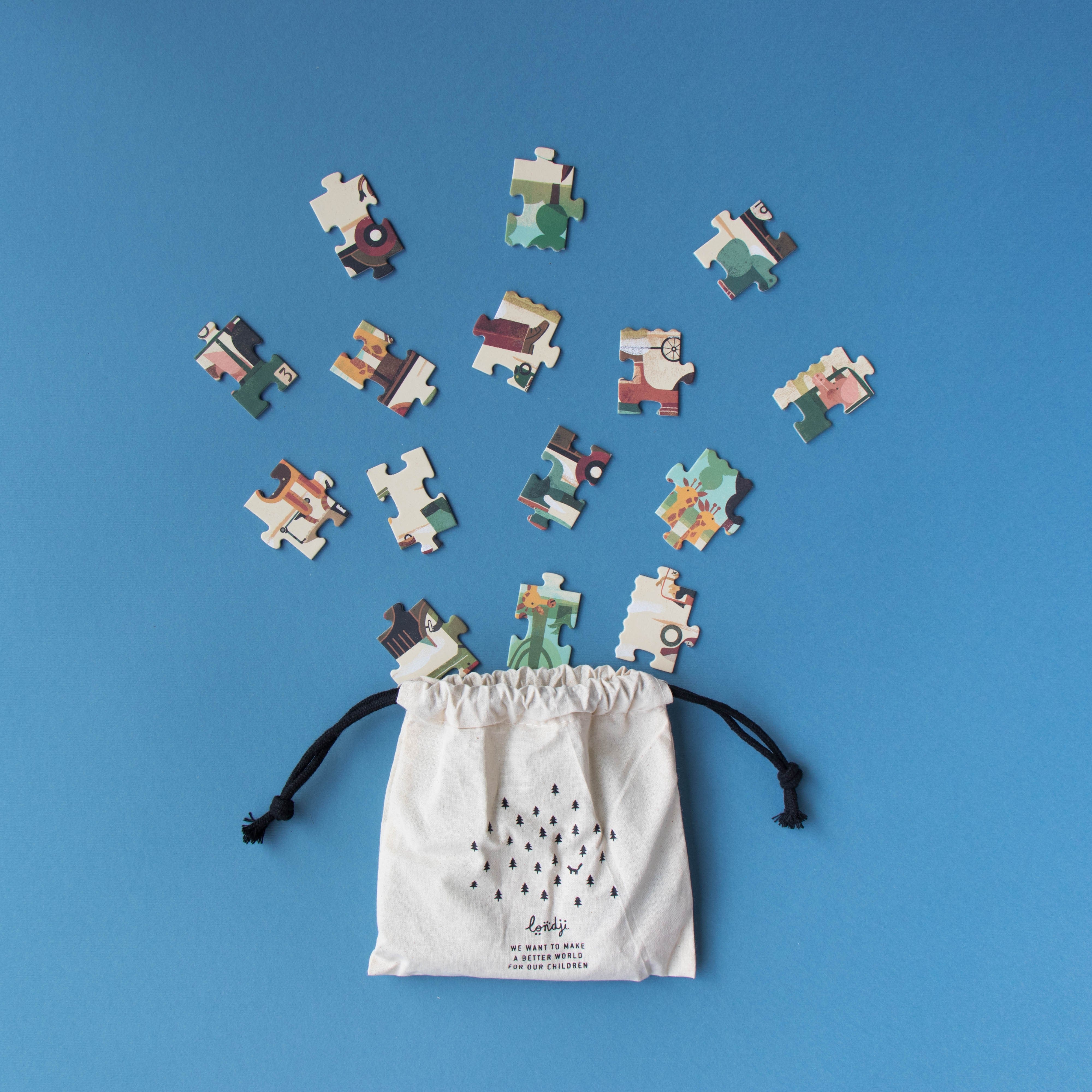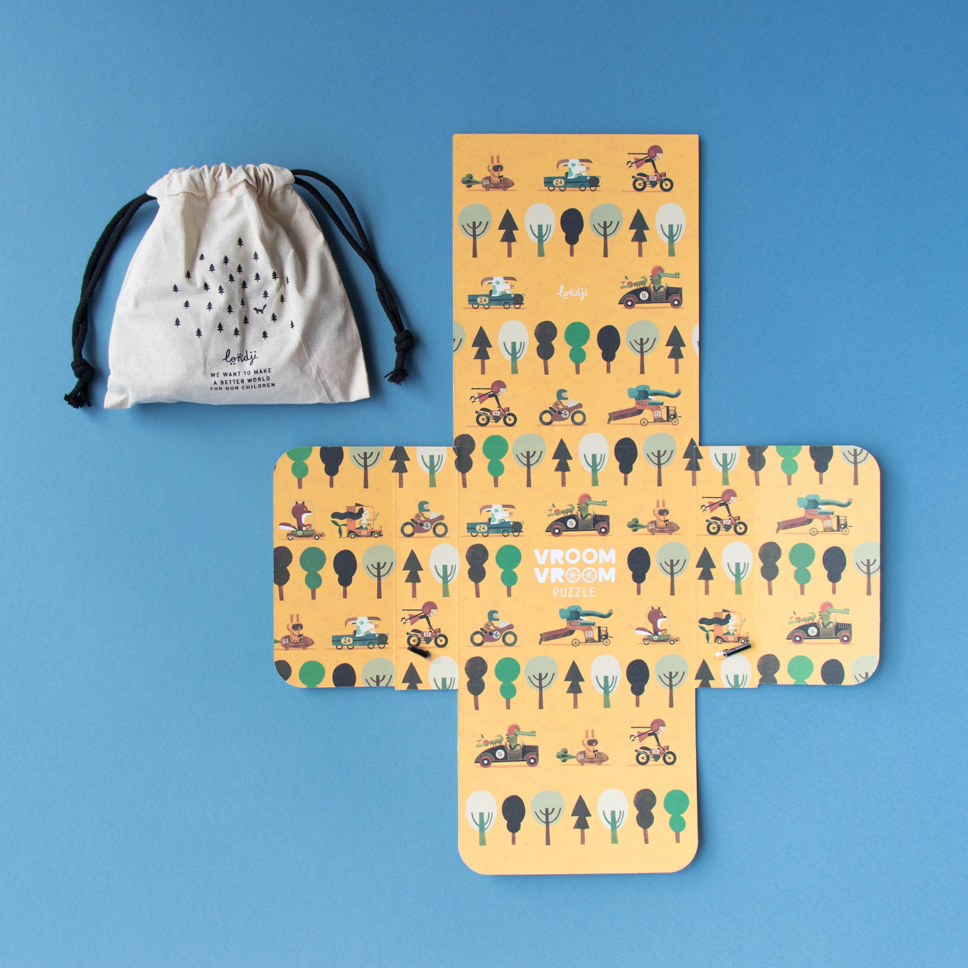 Ladies and Gentlemen, the race is about to begin!! 50 piece puzzle made with recycled cardboard and FSC paper. Packaged in sturdy cardboard box. Box measures 16.5 x 16.5 x 5 cm. Made in Barcelona. For ages 4-7.