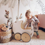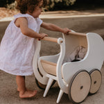 t?s a toy that doubles as two - any tiny tot?s dream come true! Serving as both a storage space for stuffed animals or dolls and a baby walker for newly-mobile little ones, the Pram 2-in-1 Walker is a perfect way to encourage your baby to take their first steps and enjoy adventures on their own two feet. Once your child is comfortable walking, easily remove the walker?s pegs - turning it into a pram that can store toys, stuffed friends and dolls! No assembly needed.