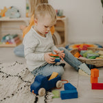 How to Clean: If you want to remove dirt from Grimms wooden products, simply wipe gently with a damp cloth and a little soapy water (if necessary). When drying, please do not place on the heater, otherwise, cracks may occur in the wood. Please allow to dry at room temperature. Please never clean Grimms toys with disinfectant, hot water or similar!