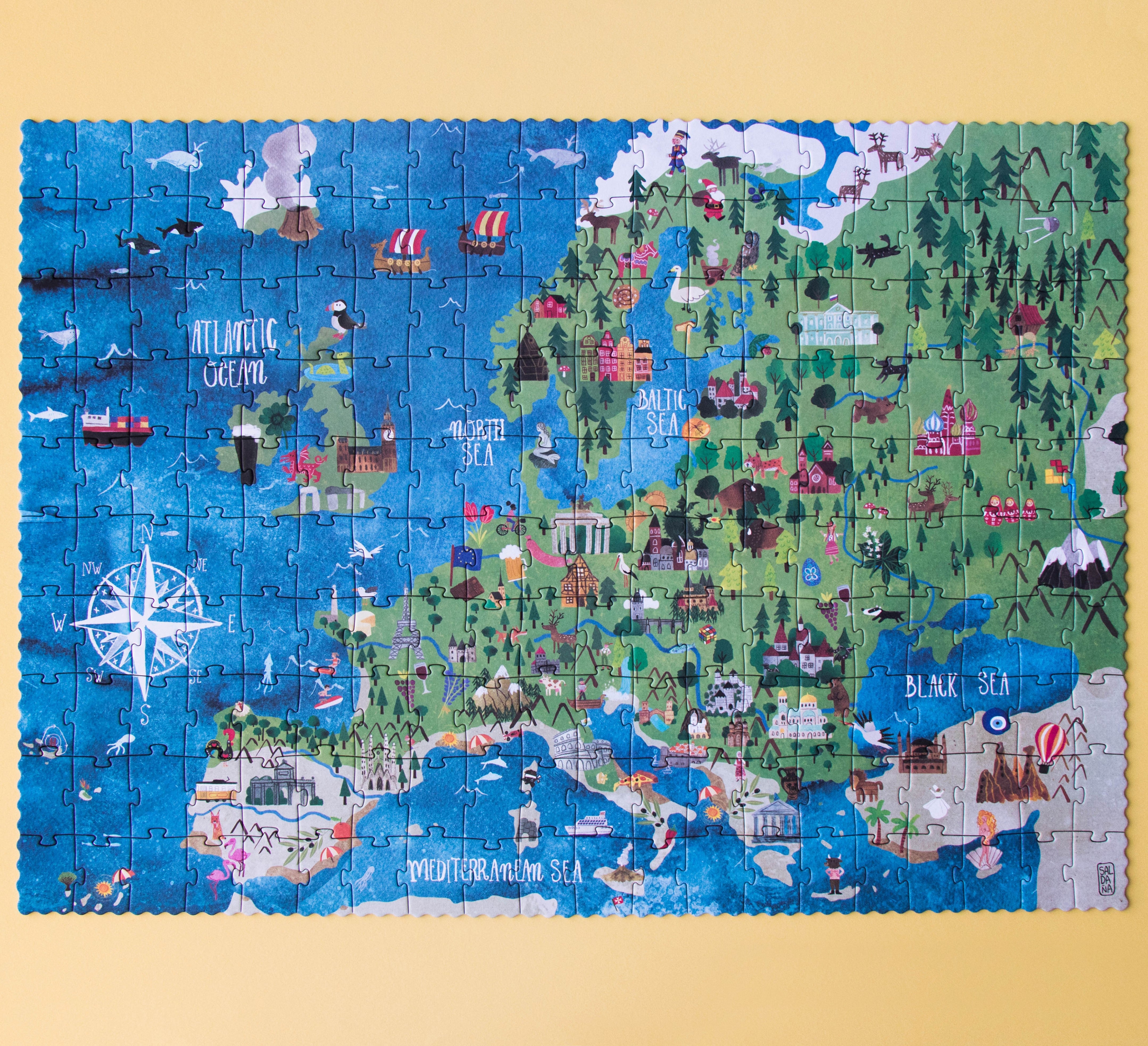 Discover Europe Puzzle made in Barcelona by Londji featuring illustration by Carmen Saldaña