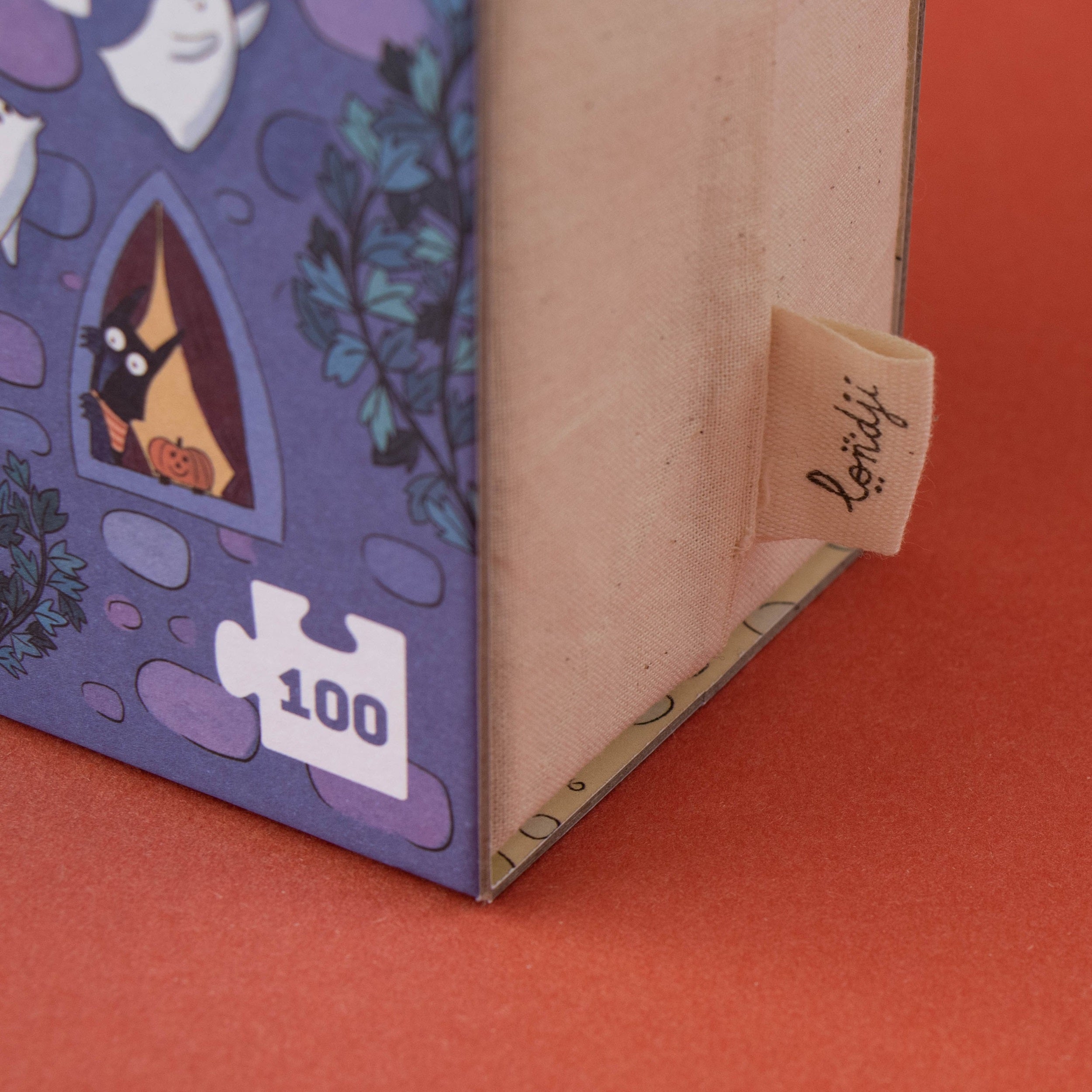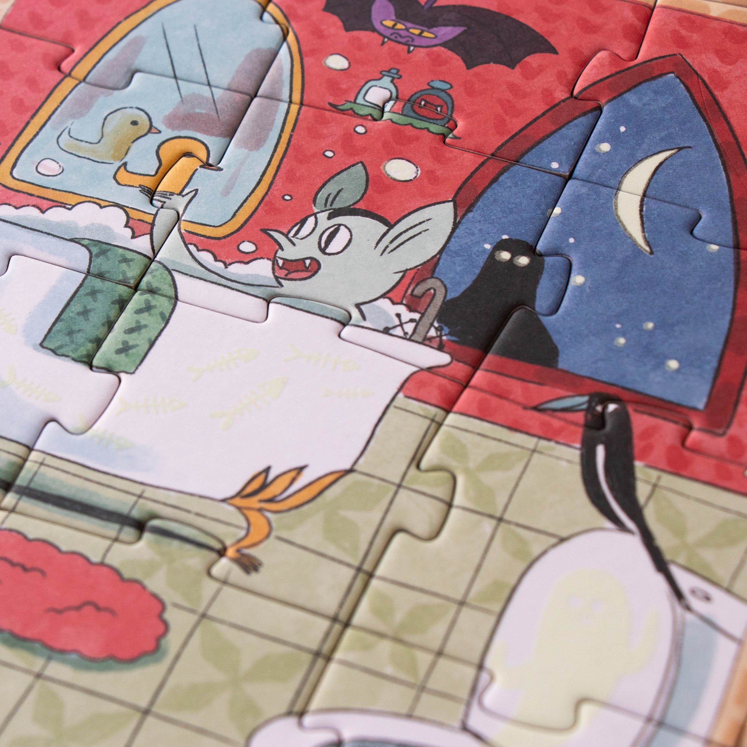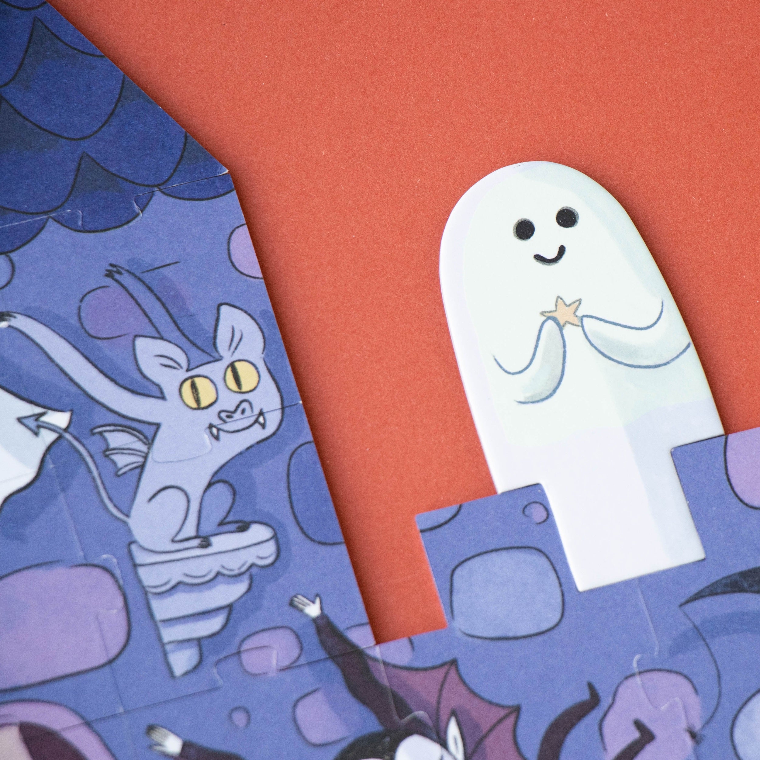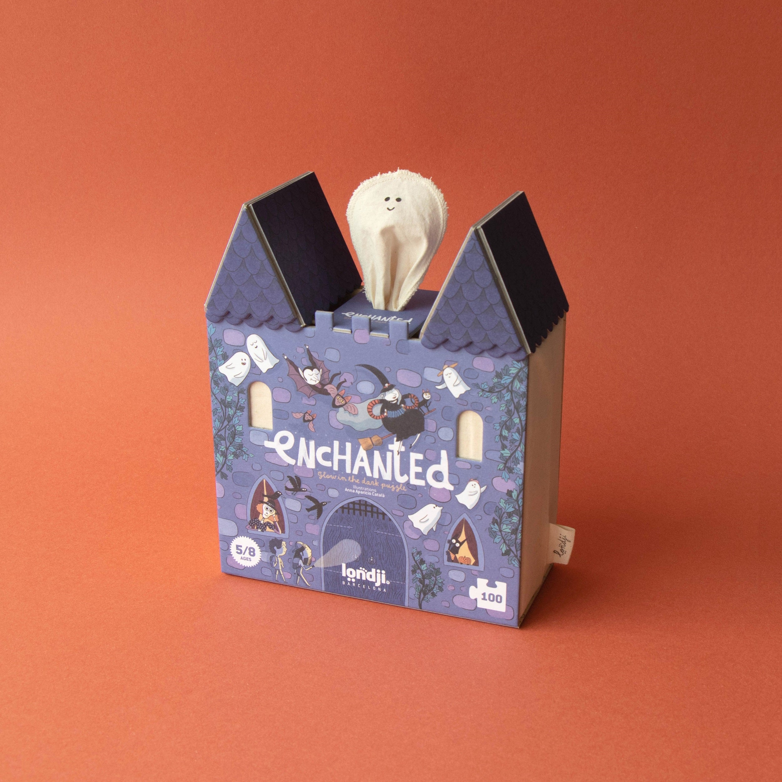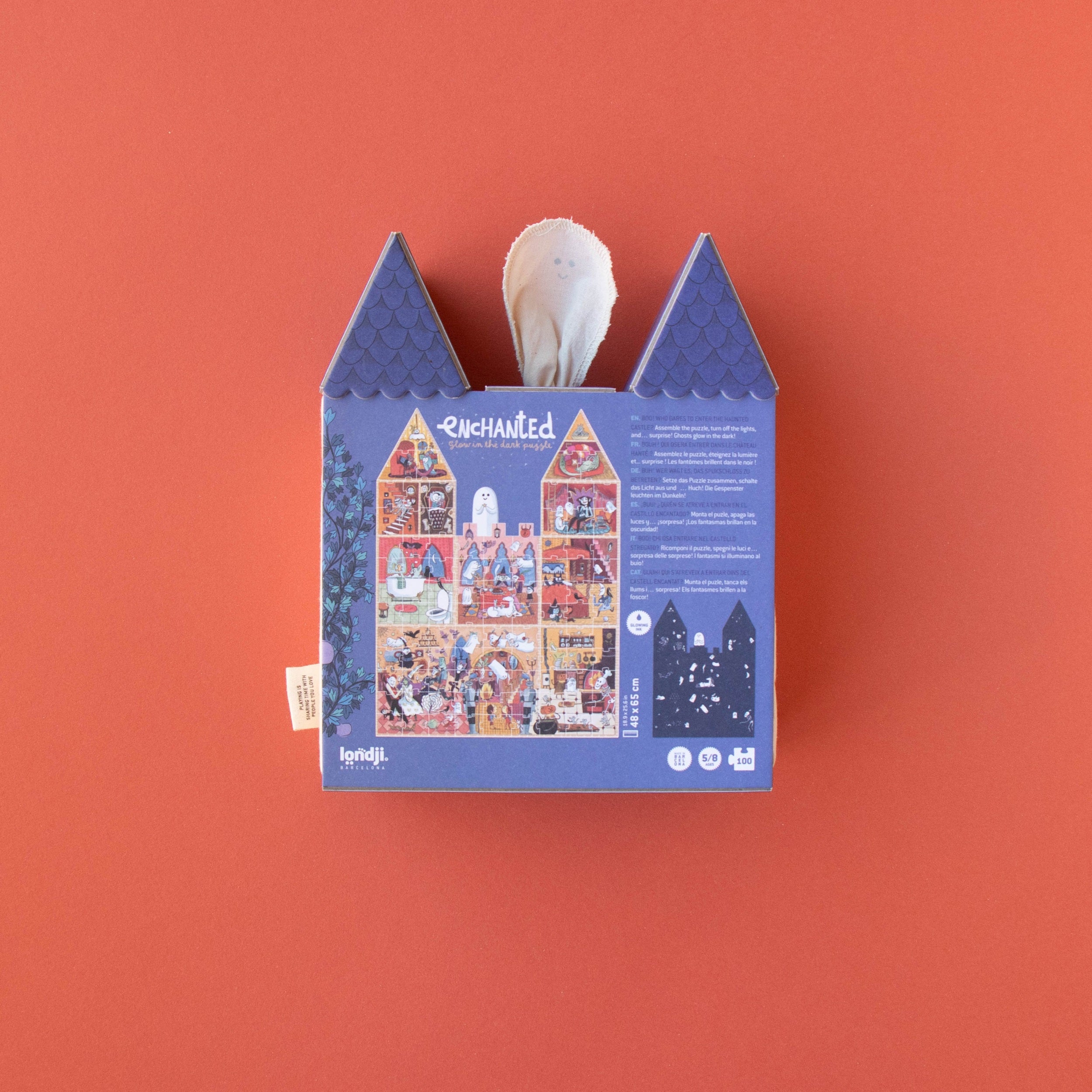 Boo! Who dares to enter the haunted castle? Assemble the puzzle, turn off the lights and ... surprise! Ghosts glow in the dark! Includes 100 puzzle pieces for ages 5-8 years old. Illustrations by Anna Aparicio Catala. Size of puzzle 48 x 65 cm. Box measures 23 x 19 x 8 cm.