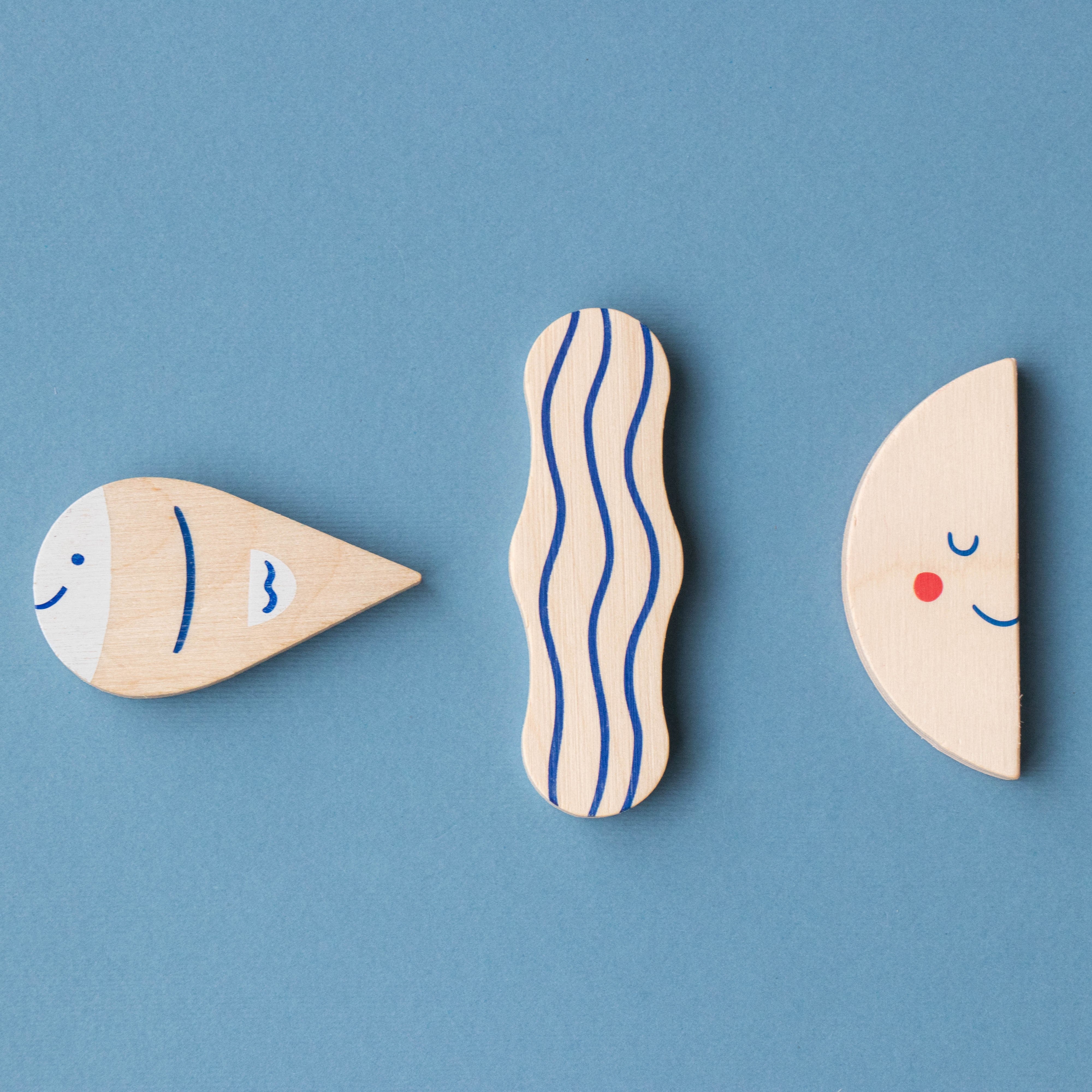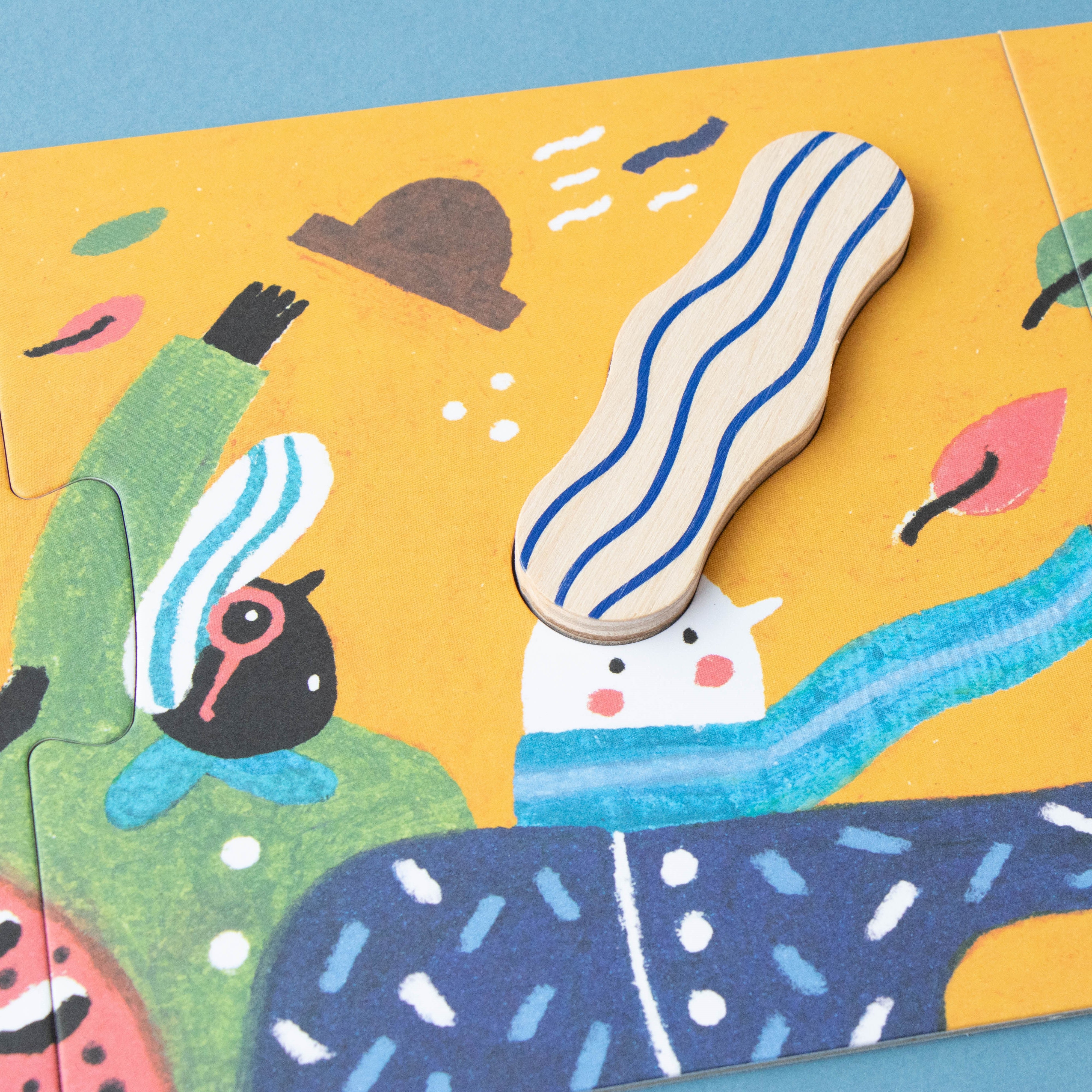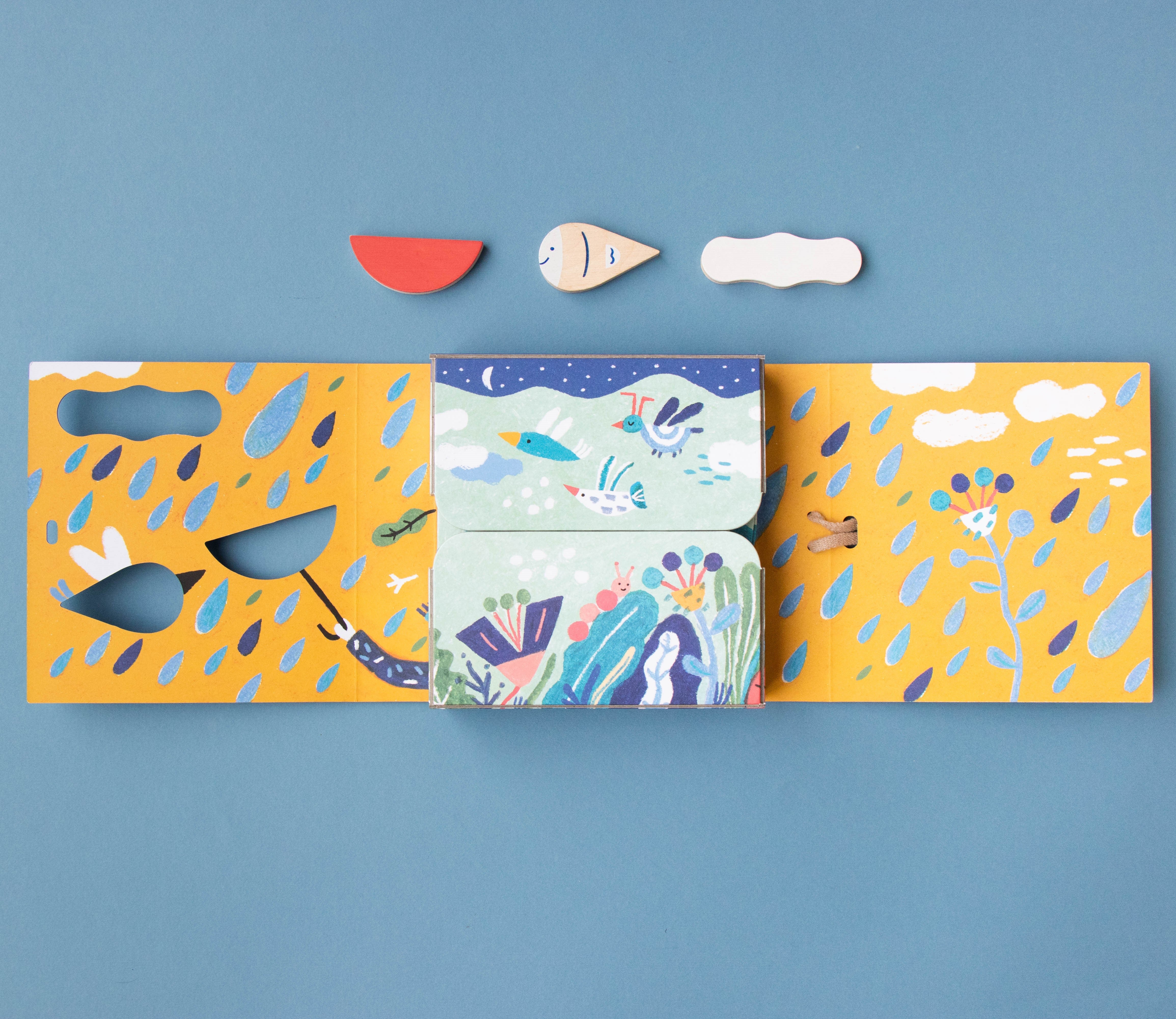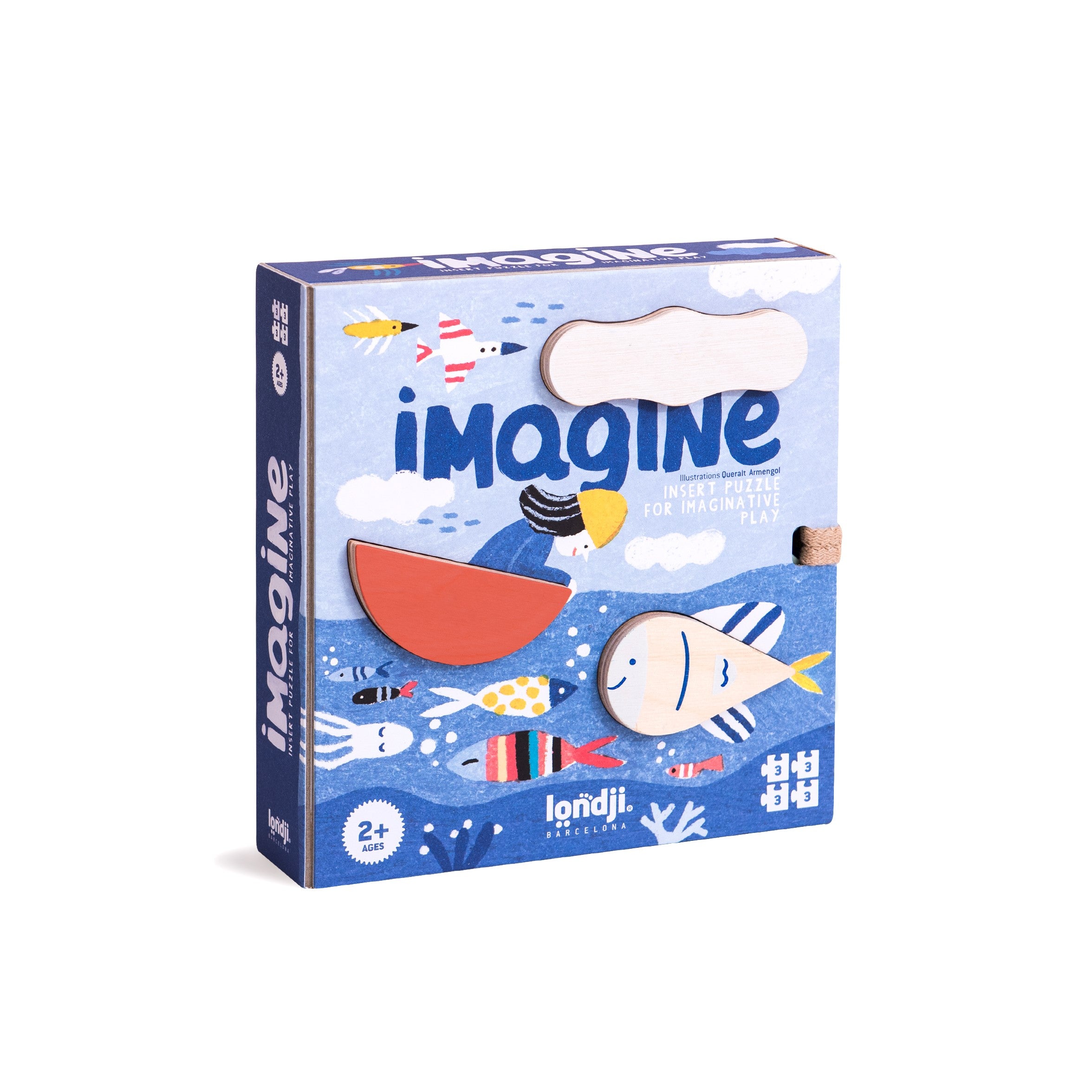 Is it the moon or a ship? A game to stimulate imagination! Assemble the puzzles and insert the wooden pieces.