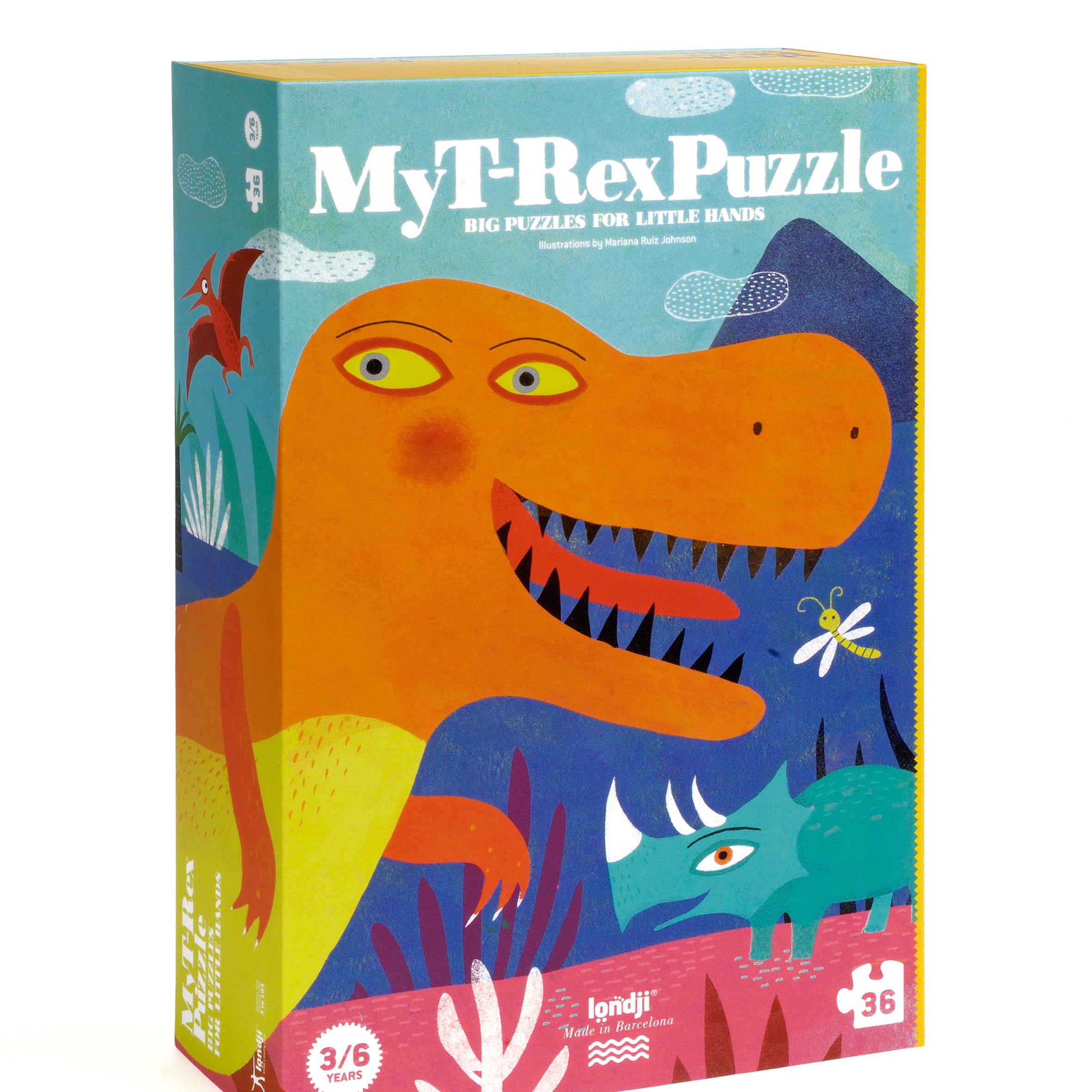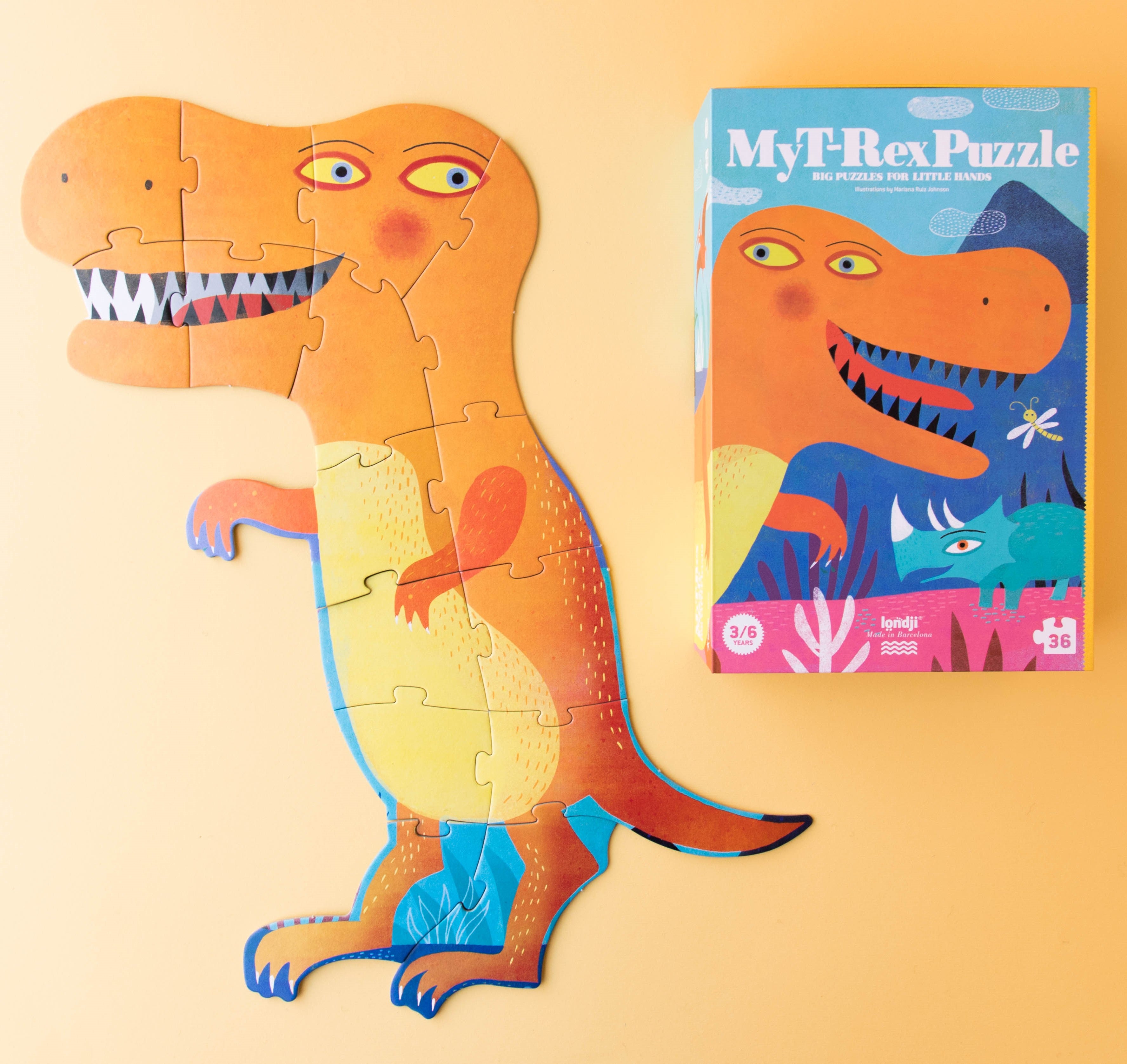 Welcome to Londji’s Jurassic world! Our T-Rex opens the door to a fantastic world where the Triceratops, Diplodocus and Pterodactylus will take you for a walk. Roaaarrrrr!!!! A 36 pieces puzzle. Illustration by Mariana Ruiz Johnson.